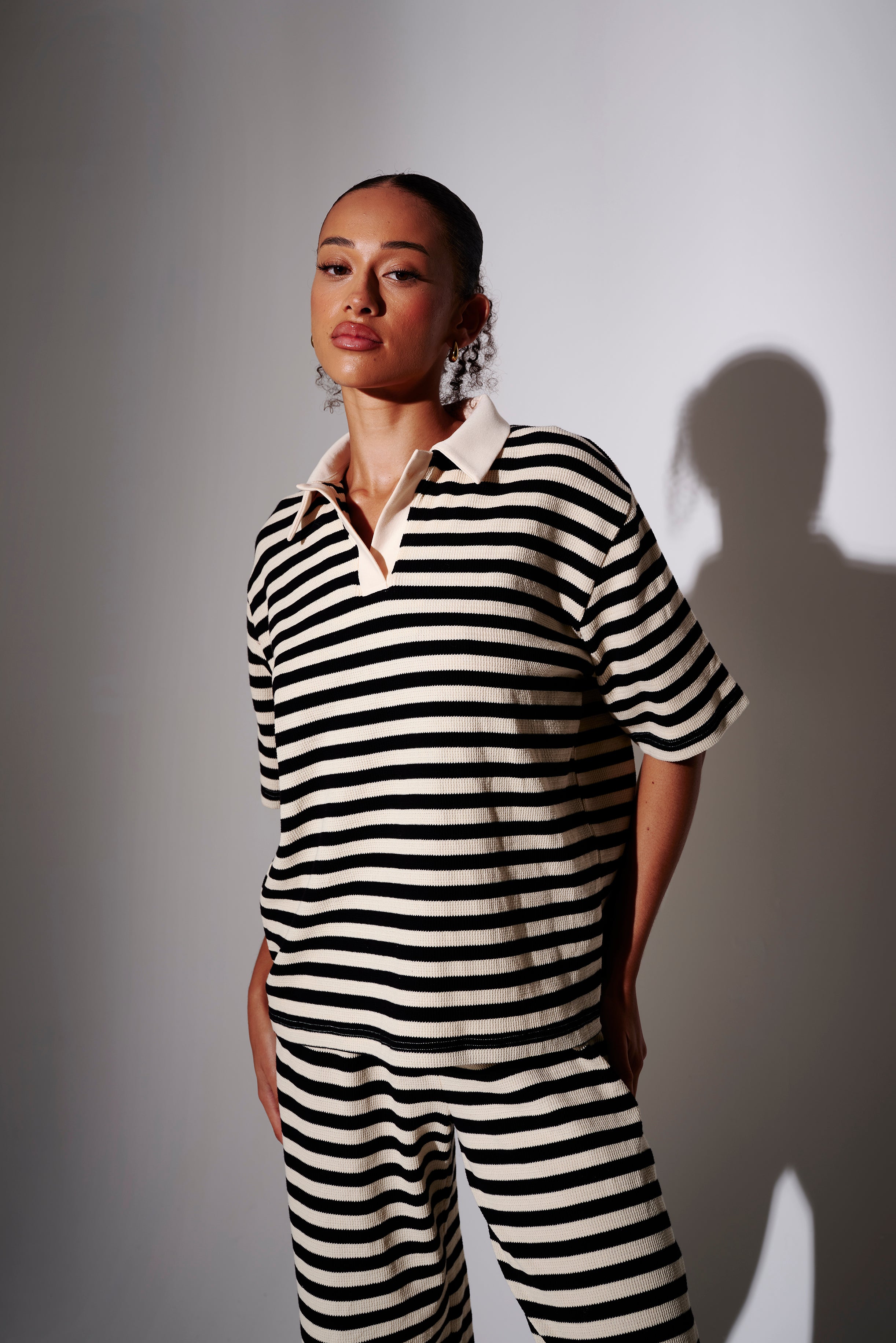 Black Wave Rib Zebra Bead Triangle Bikini Top