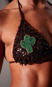 A delicate crochet bikini top adorned with shimmering sequins and bead accents.