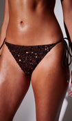 Delicate crochet bikini bottoms adorned with shimmering sequins and bead accents.