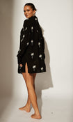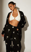 Made from soft, breathable fabric, this shirt features intricate embroidery with shimmering sequin palm tree accents, adding a touch of tropical elegance and sparkle. The long sleeves provide a comfortable, versatile fit, perfect with the matching pants.