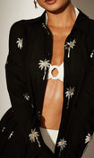 The Long Sleeve Shirt with Embroidered Sequin Palm Tree Details is the perfect stylish addition to any summer wardrobe.