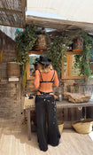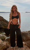 Our ISLA beach trousers EMBELLISHED IN BLACK, are a must-have for your suitcase this season. Adorned with stud embellishments, this piece will take you directly from beach to bar.