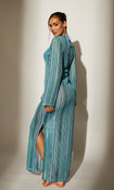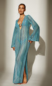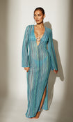 Elevate your beach style with our Blue Crochet Ring Decal Maxi Beach Dress! This dress features a beautiful blue crochet design and a flattering maxi length.