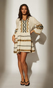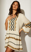 The Jacquard Drop Hem Tiered Mini Dress offers a textured design with a stylish drop hem and layered tiers, creating a chic and modern silhouette.