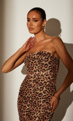 Effortlessly chic, this dress features a versatile strapless design and a bold leopard print that will make a statement wherever you go.