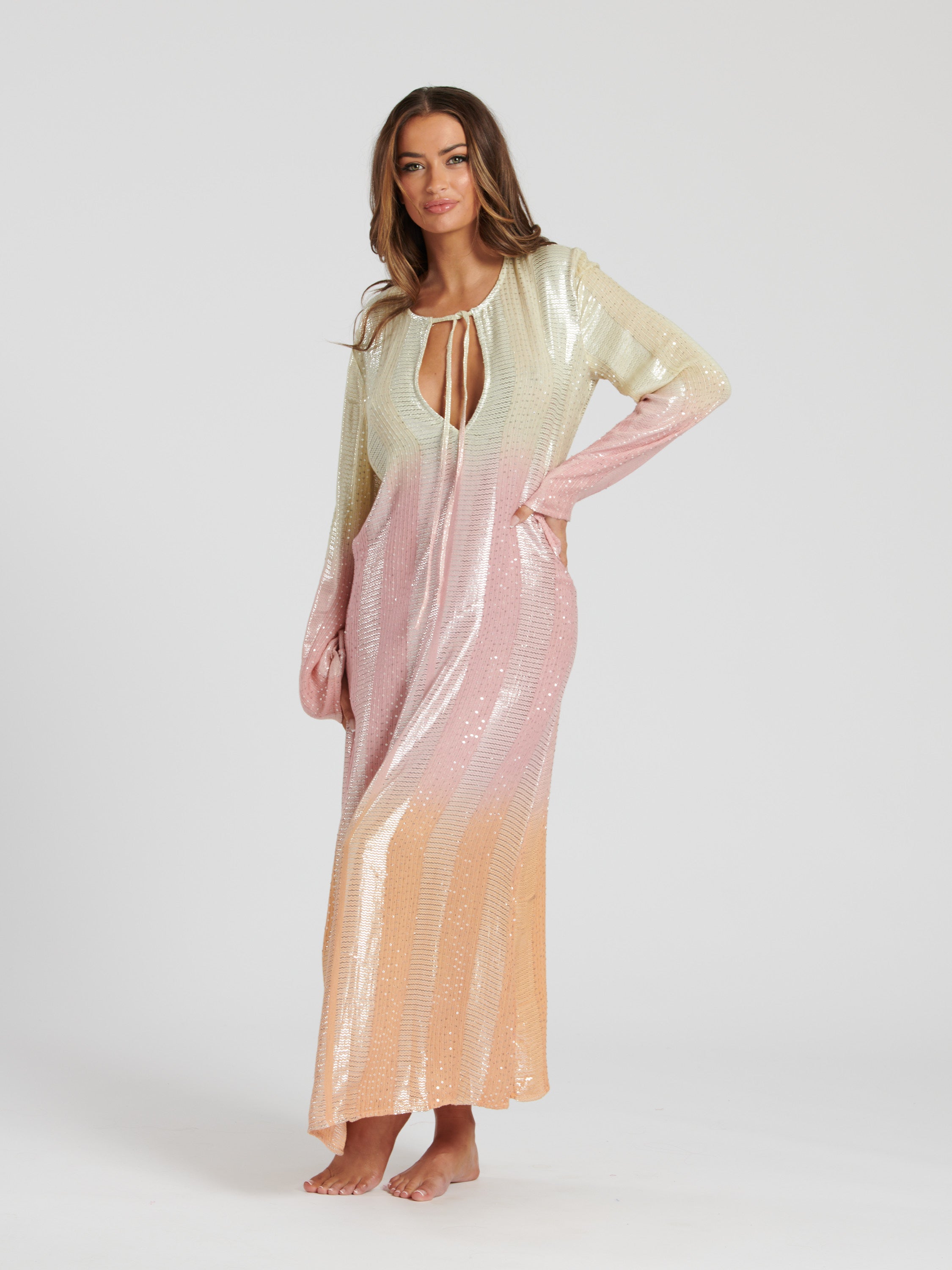 Taking you from pool side parties to sunset dinners, our BAHAMA BREEZE metallic sequin dress in PASTEL OMBRE is a true holiday must-have. Made from a sequin woven fabric, this dress has been designed to be worn in the sunshine.