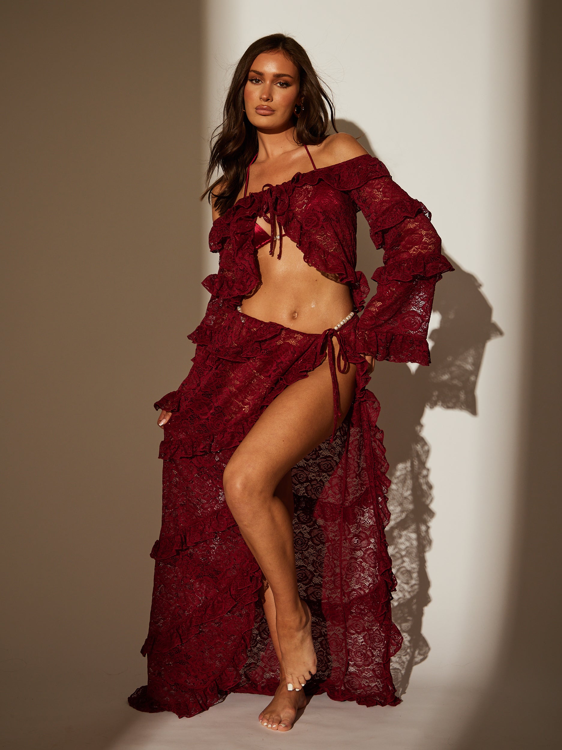 Style tip: Pair with the ‘tango’ lace split skirt in cherry for the perfect summer co-ord.