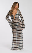 This dress exudes elegance and sophistication, perfect for any special sunny occasion. Crafted with intricate crochet and adorned with a beautiful silver decal, it will surely be a showstopper. Don't miss out on this must-have addition to your wardrobe!