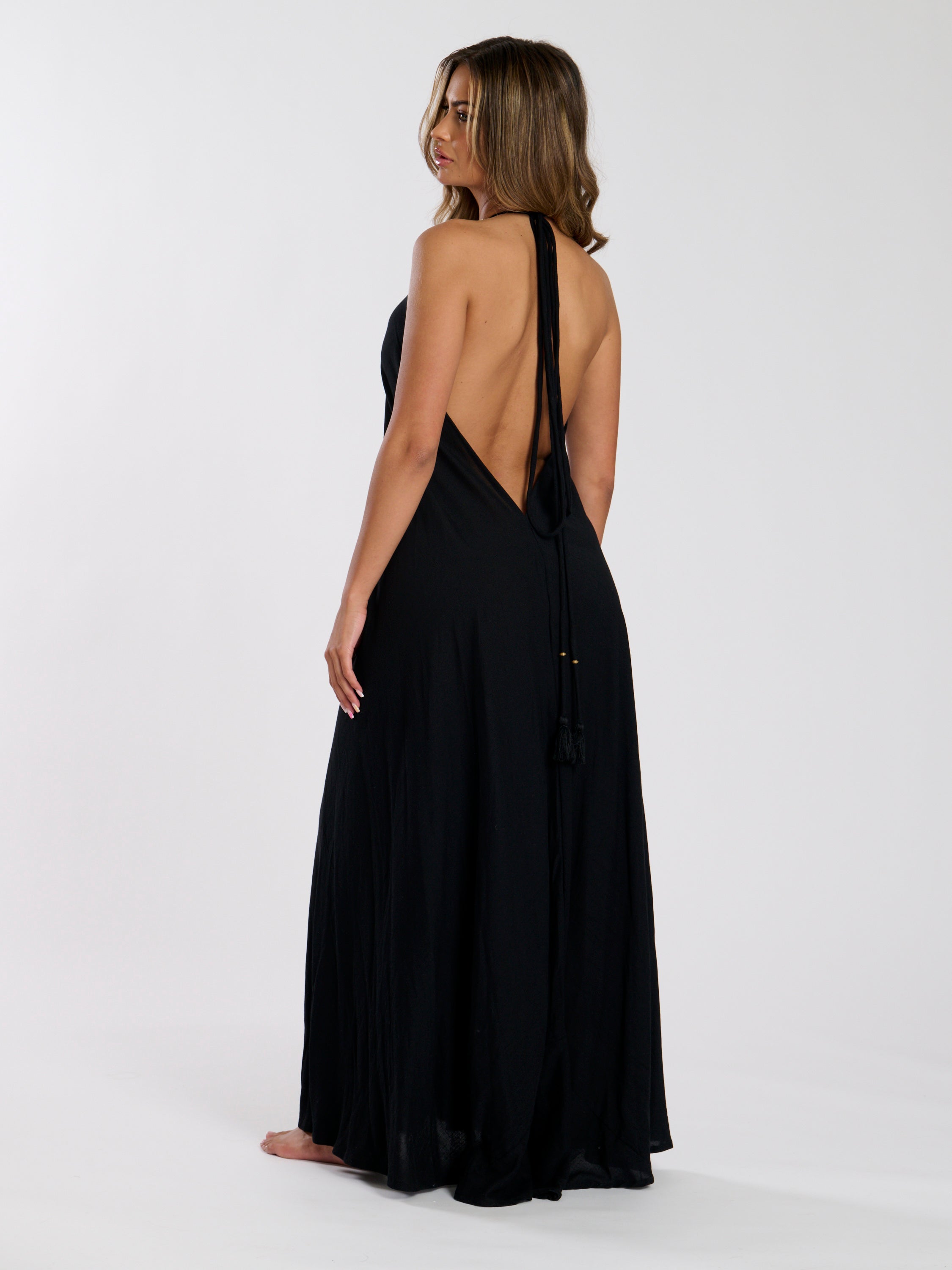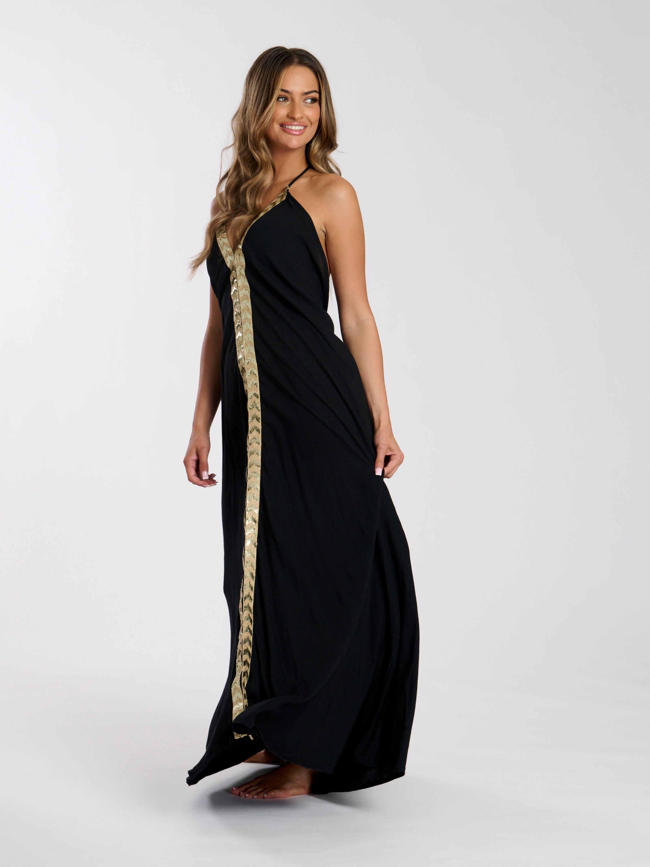 Become the ultimate fashion icon in this breath-taking v neck sequin detail halter maxi dress!