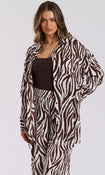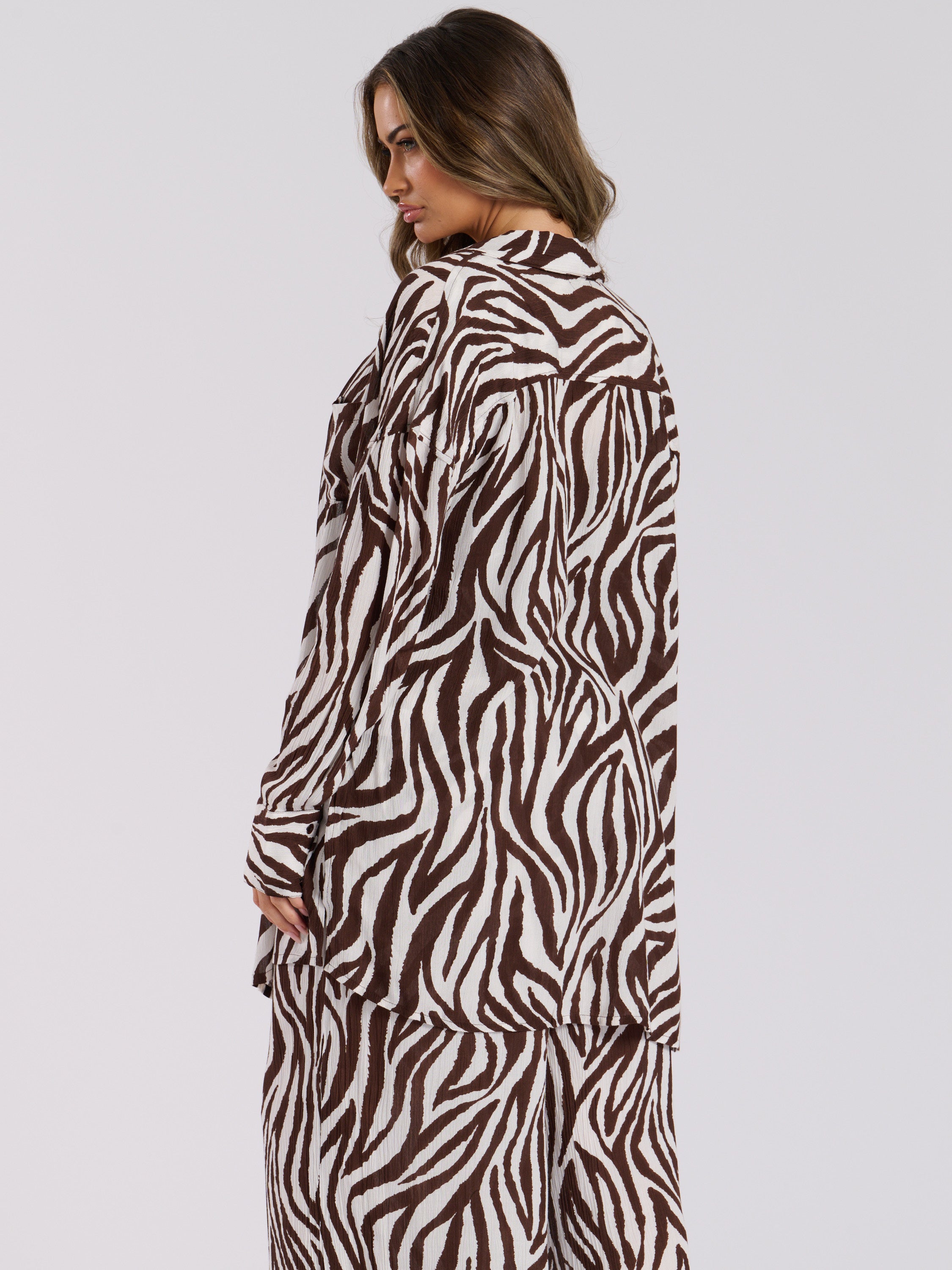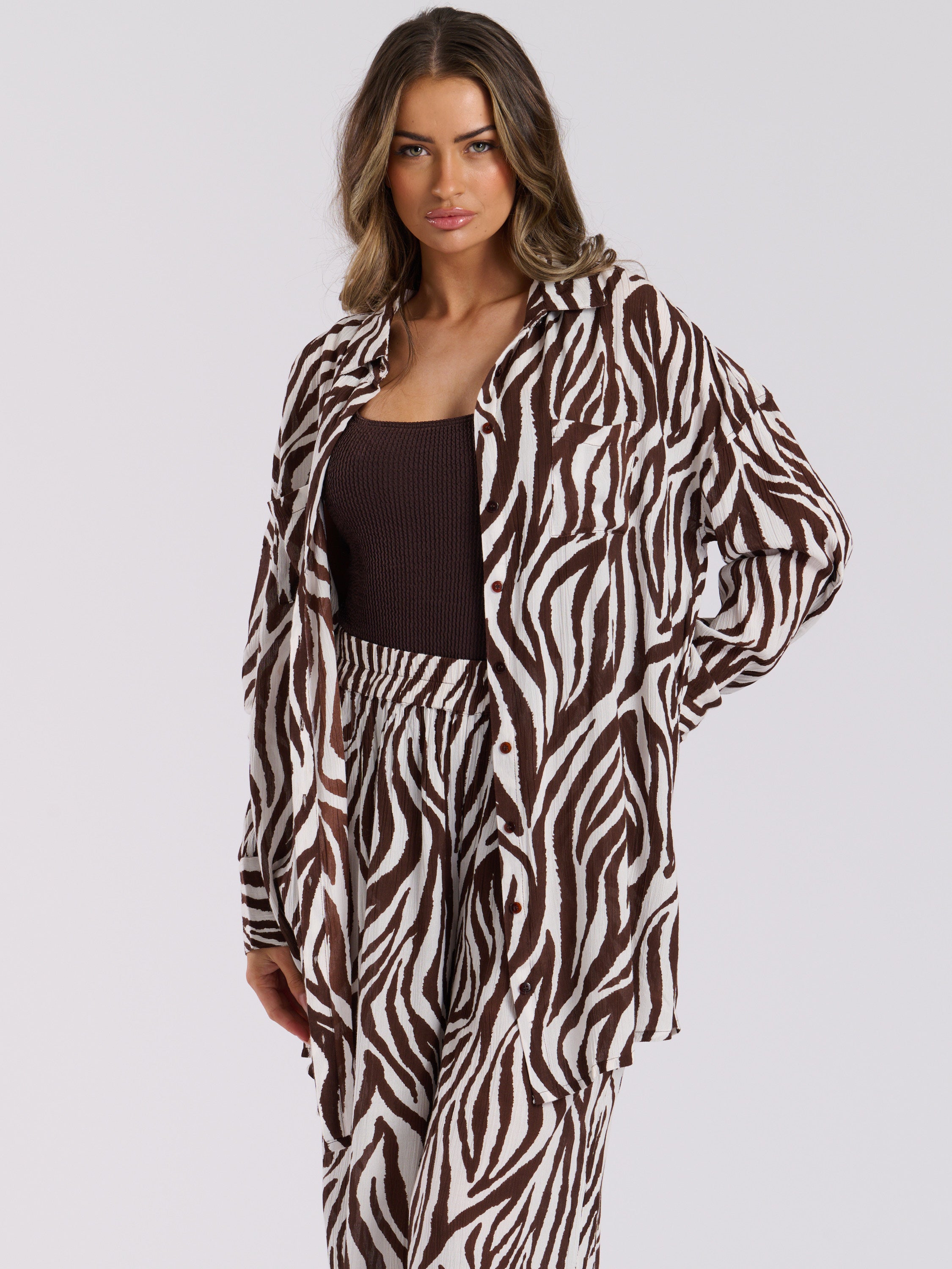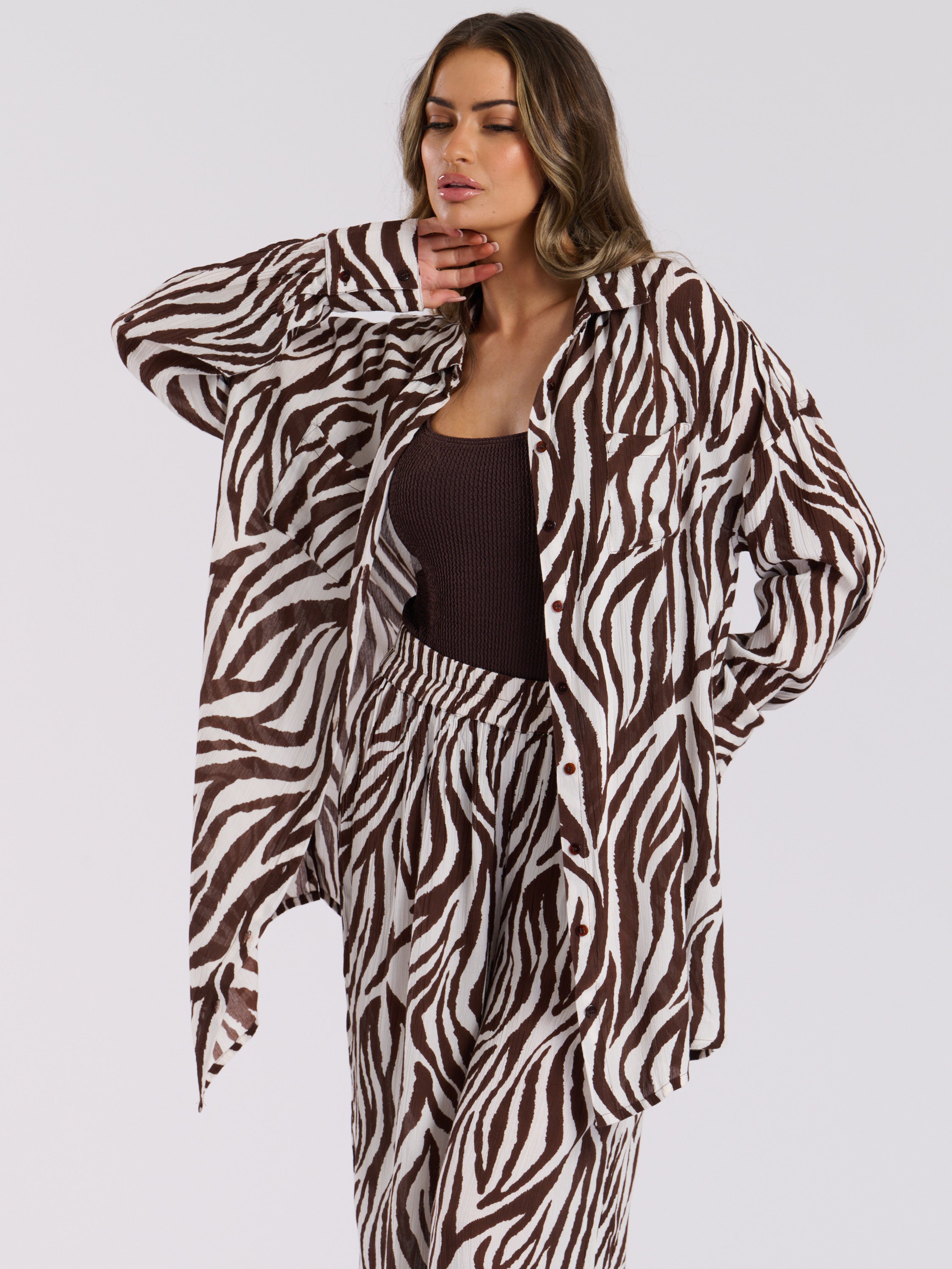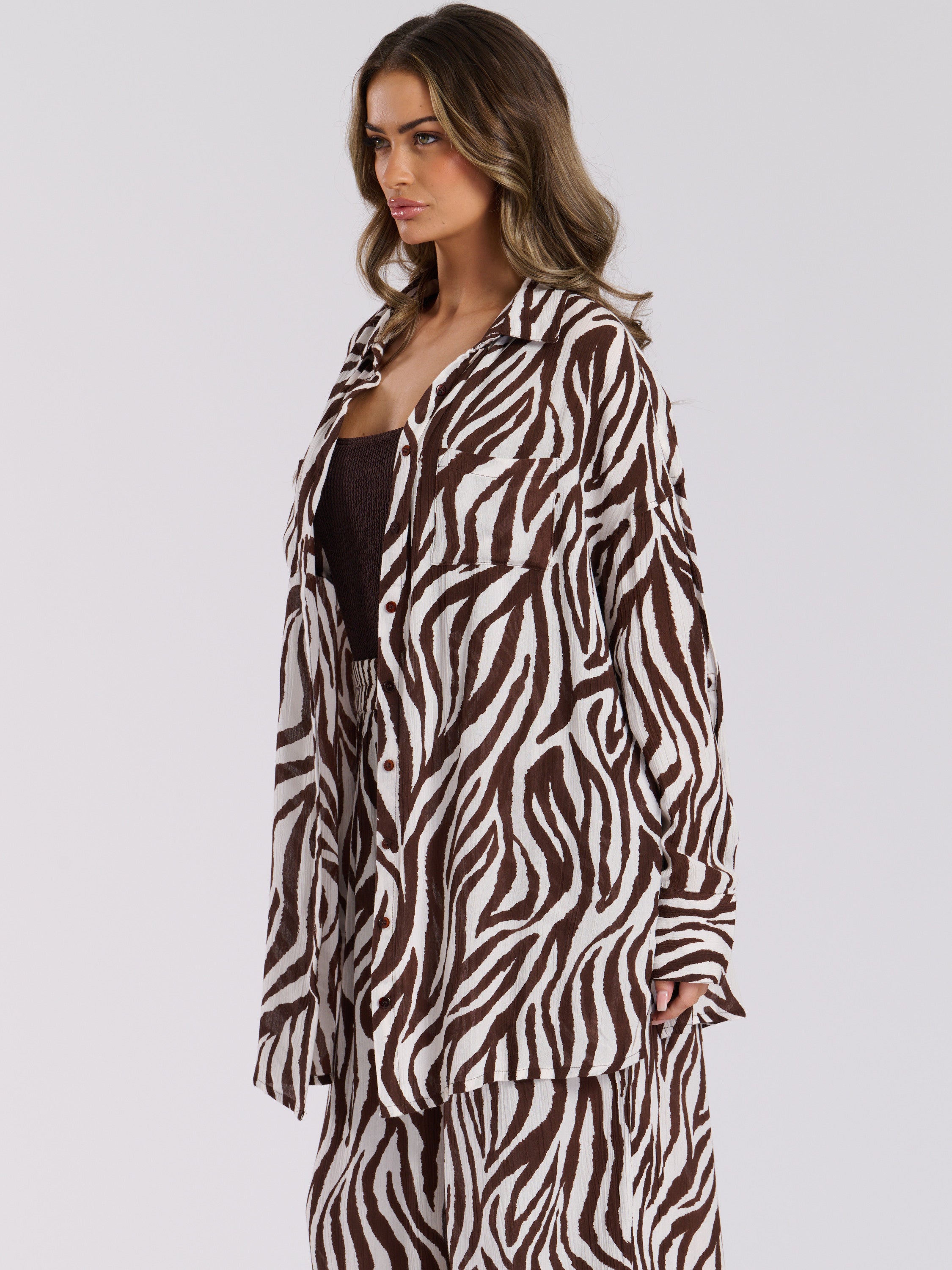 Our VOYAGER over sized beach shirt in CHOCOLATE ZEBRA is designed to be dressed up or down. Made from a lightweight breezy fabric, it's a beach day essential!