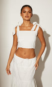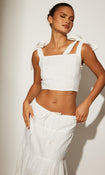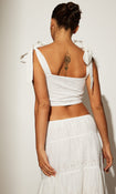 Our flattering Bunny cropped top with delicate broderie detail and adjustable tie shoulder straps, is perfect for warm-weather days.