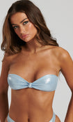 Our KNOT TODAY bikini top in BABY BLUE is a must-have for your suitcase this season. Designed to make you feel amazing, this bikini top is perfect for the poolside and beach front. Made from a fabric that glistens in the rays, this bikini is a true summer's dream!