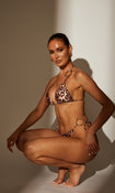 Upgrade your beach look with the ‘spritz’ bikini top with metal decal in leopard.