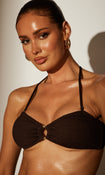 Our SEAS THE DAY bikini top in CHOCOLATE CRINKLE is a must-have for your suitcase this season.