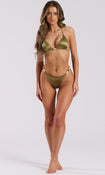 Our TRINKET bikini top in HIGH SHINE SAGE is a must have in your suitcase! Designed to make you feel amazing, this gorgeous material will glisten under the rays.