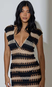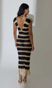 A head-turning maxi with texture, stripes, and a boho fringe finish.