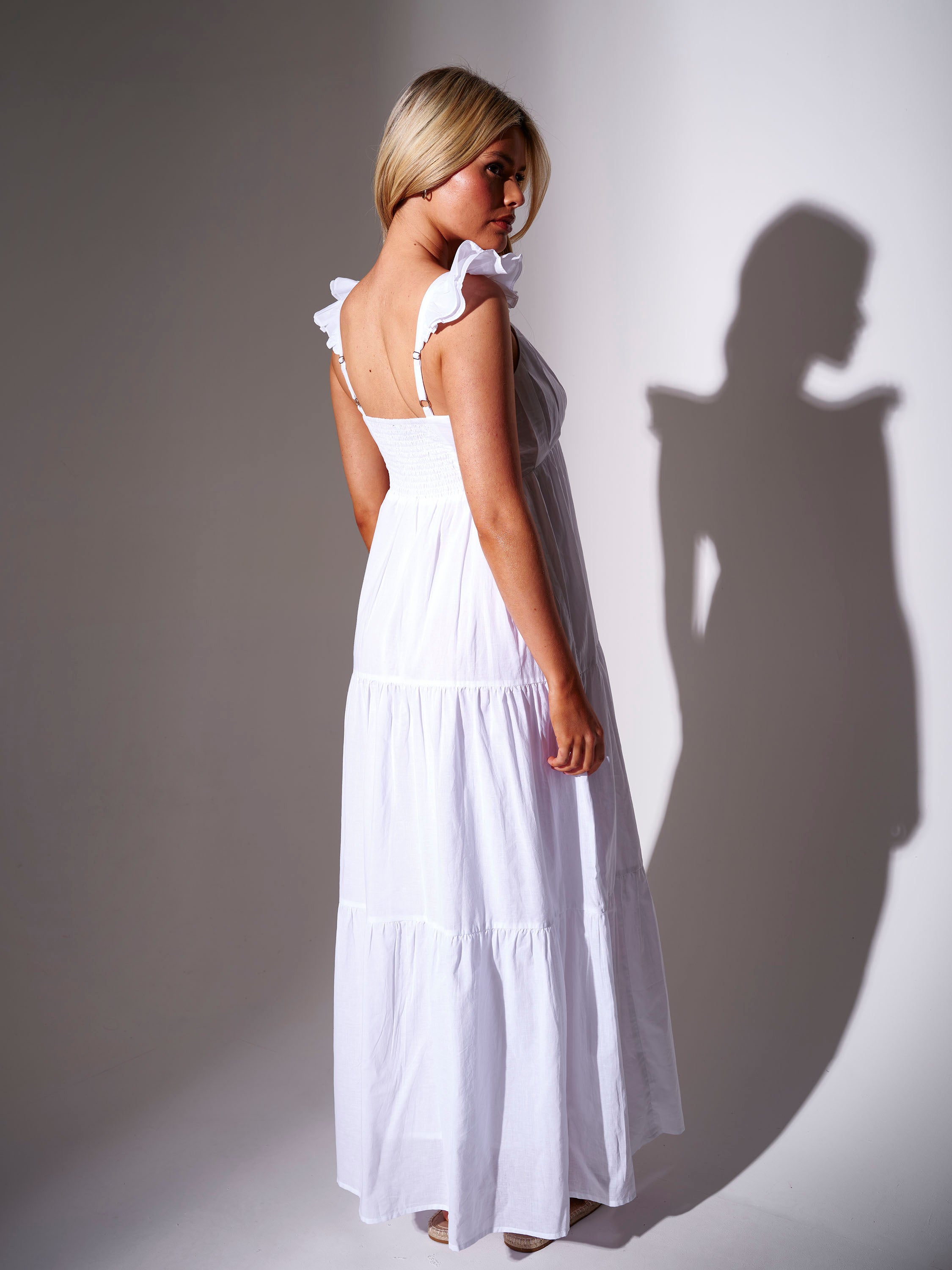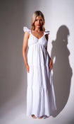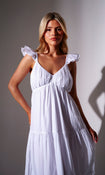Frill Cotton Maxi Dress in White