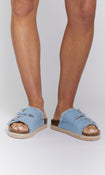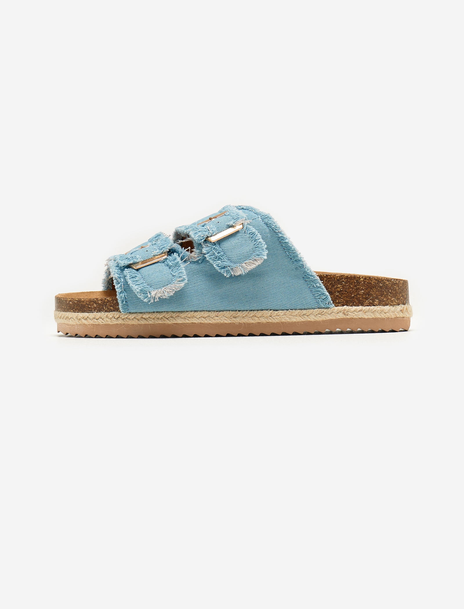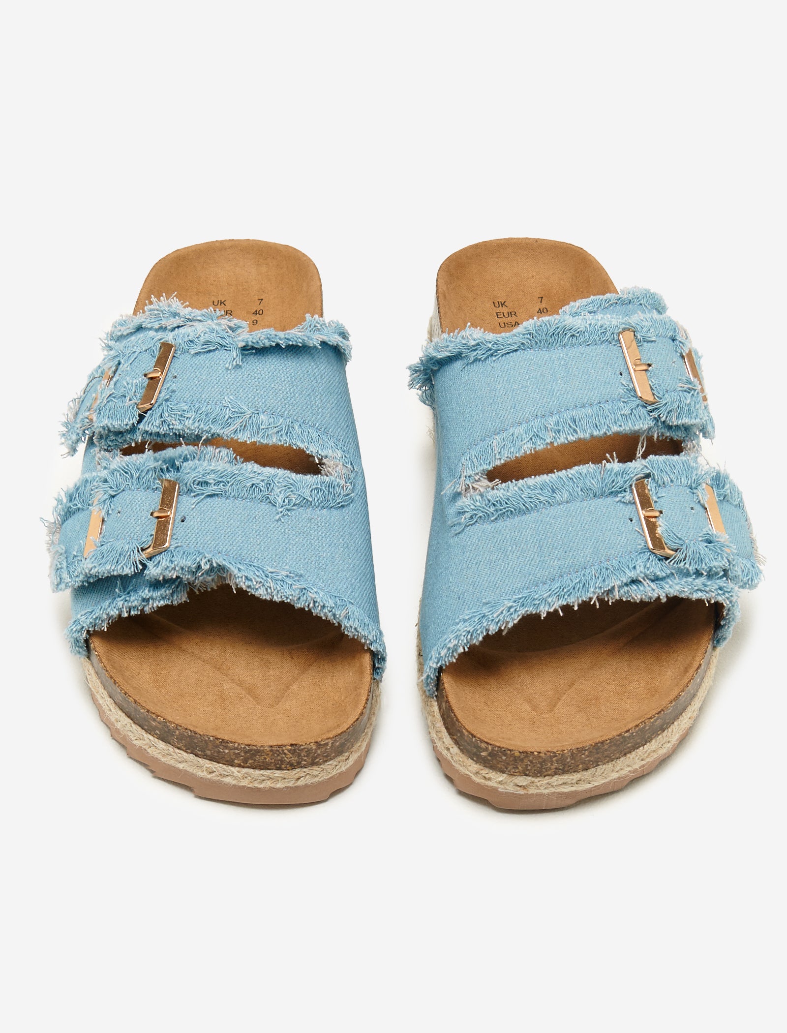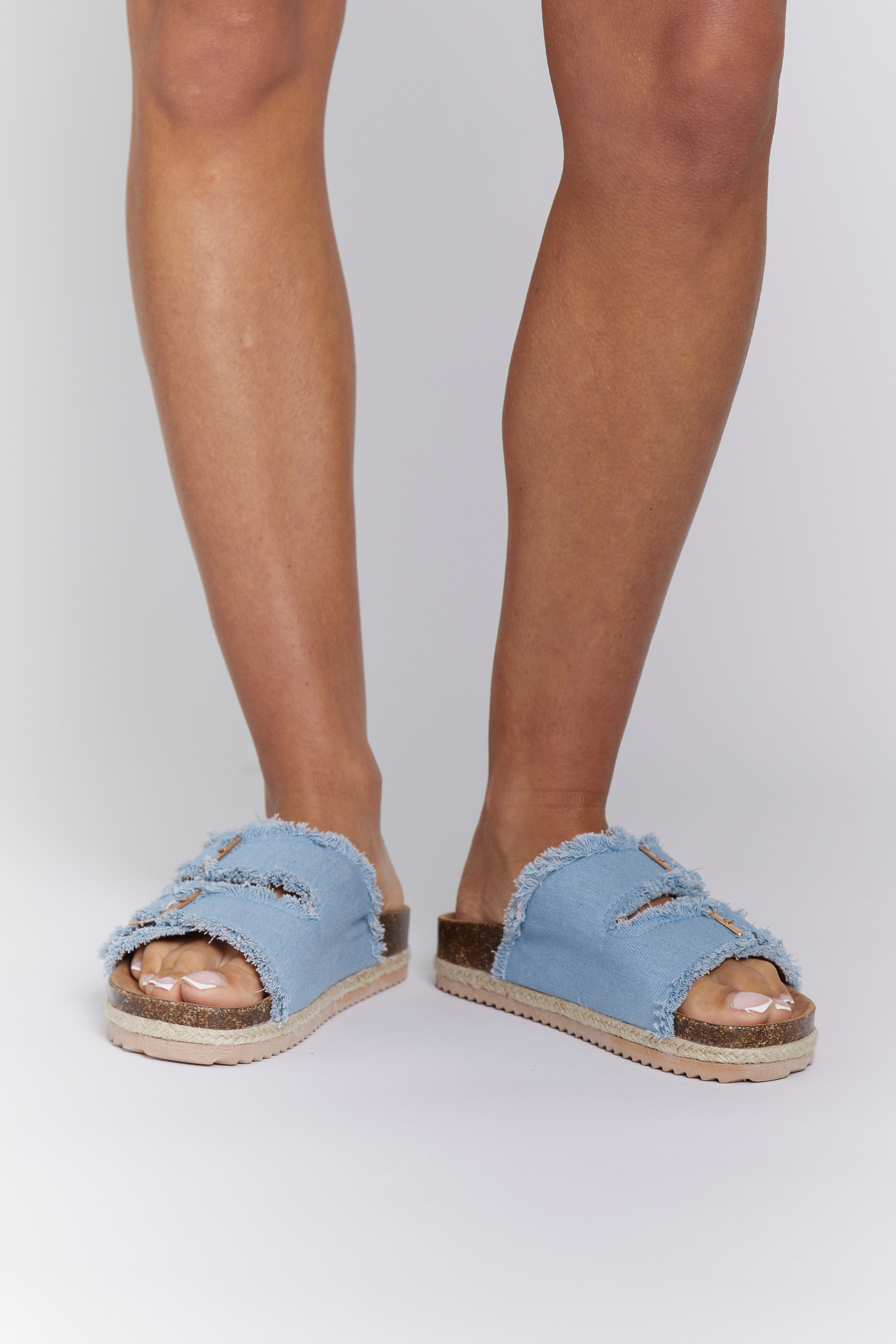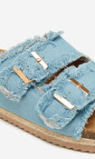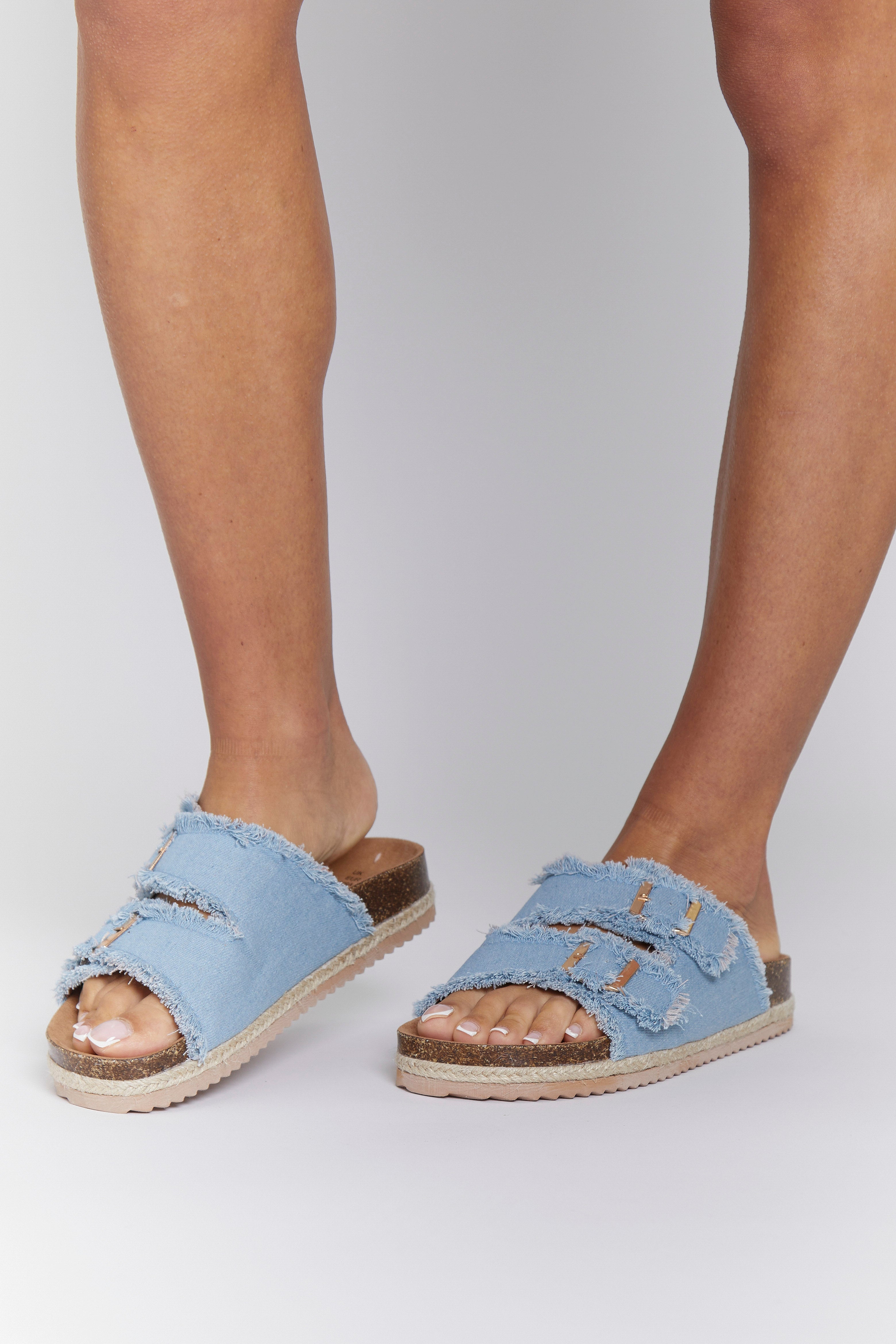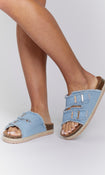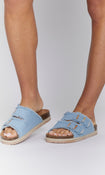 Step into style with our Blue Double Buckle Denim Espadrille Sandals! These chic sandals feature a double buckle design for a secure fit, while the denim material adds a touch of flair.