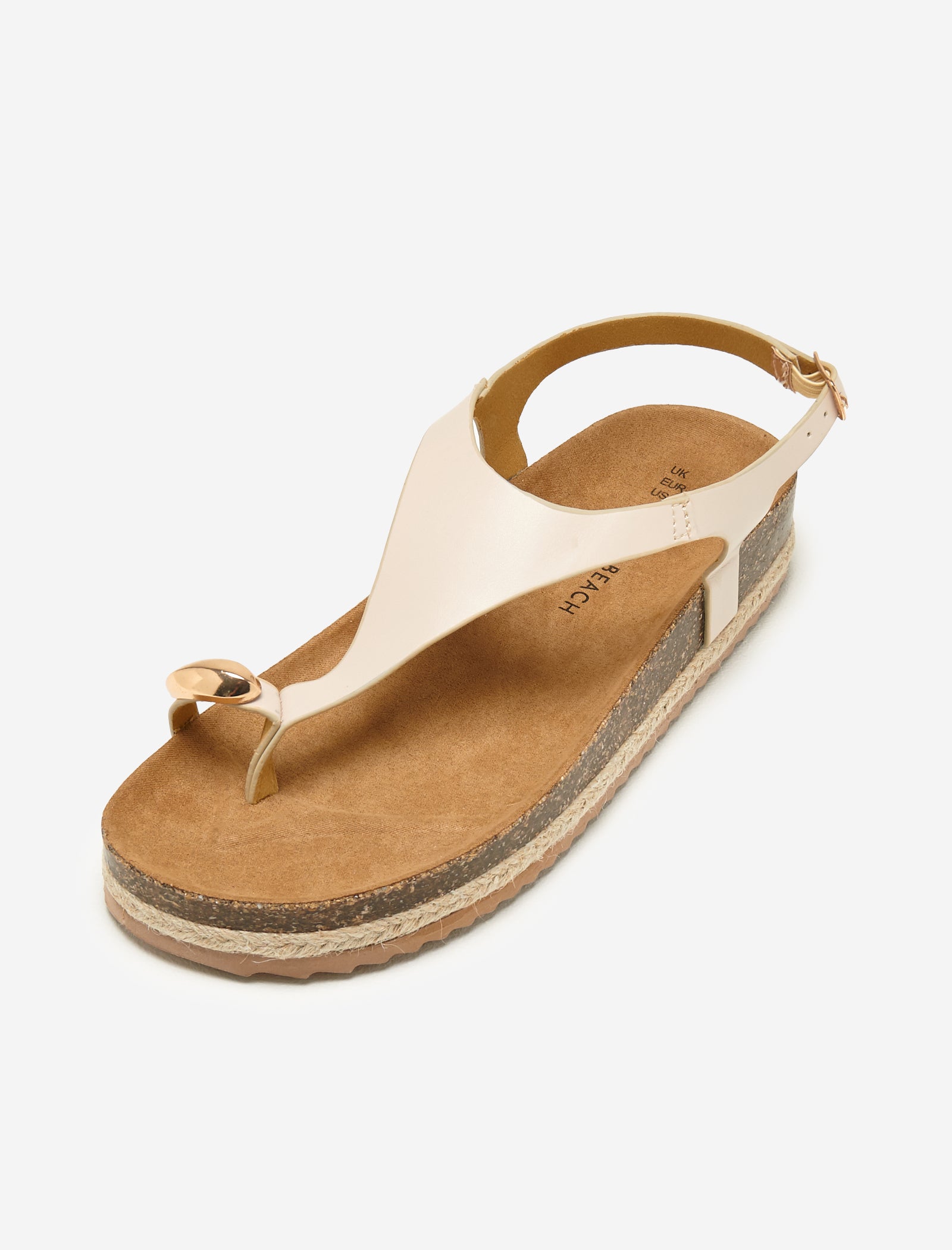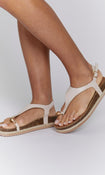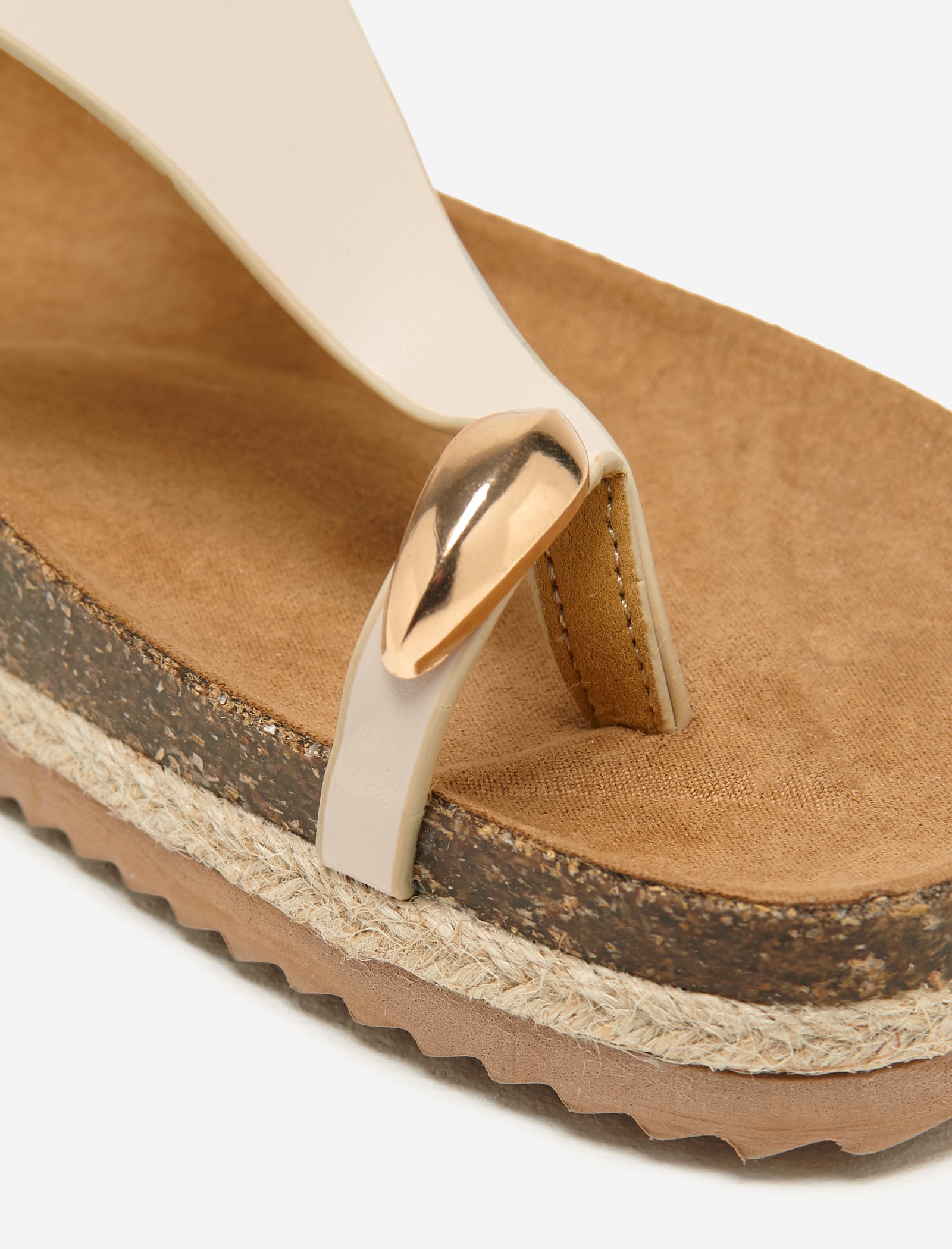 Step into style with our Cream Toe Loop Espadrille Sandal! This trendy sandal features a comfortable toe loop design and a classic espadrille sole, making it the perfect addition to any summer outfit.