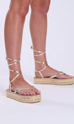 GuyStudded Flatform Gold Espadrille Sandals Crafted for both style and comfort, these sandals feature stunning studded detailing and a flatform design that offers a trendy boost to your height.
