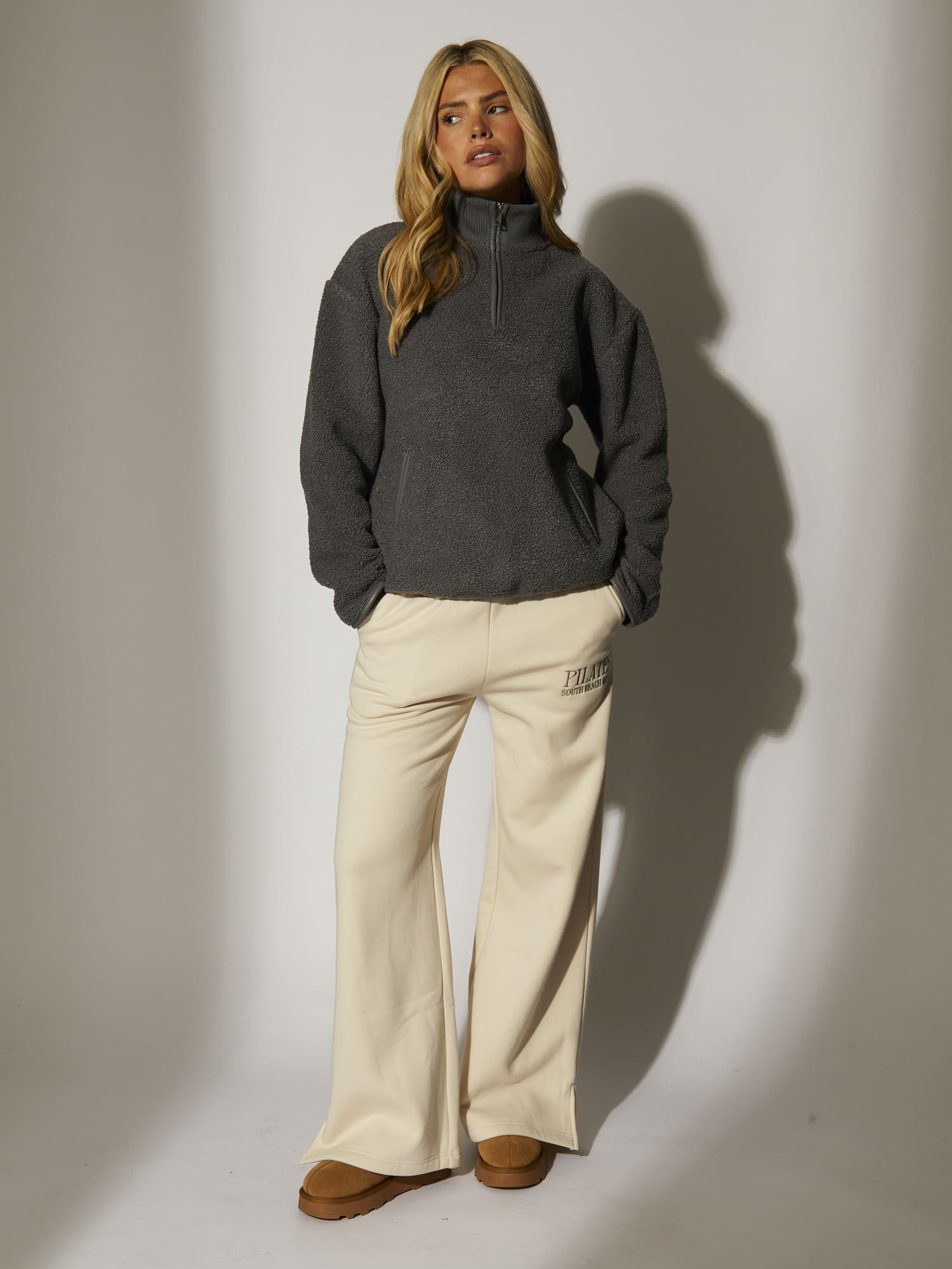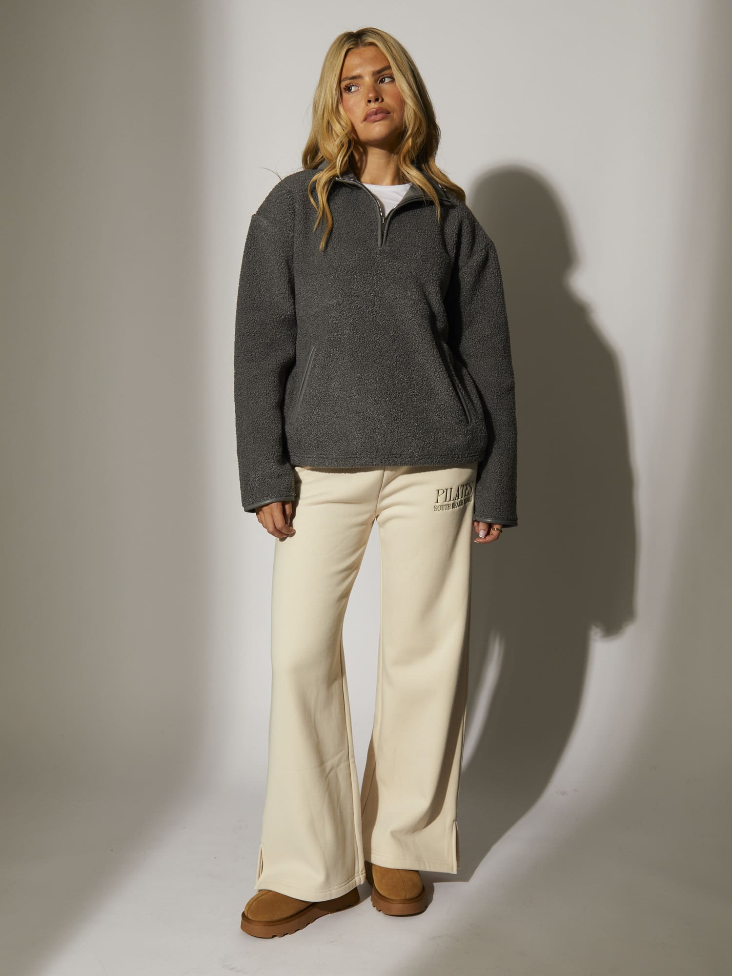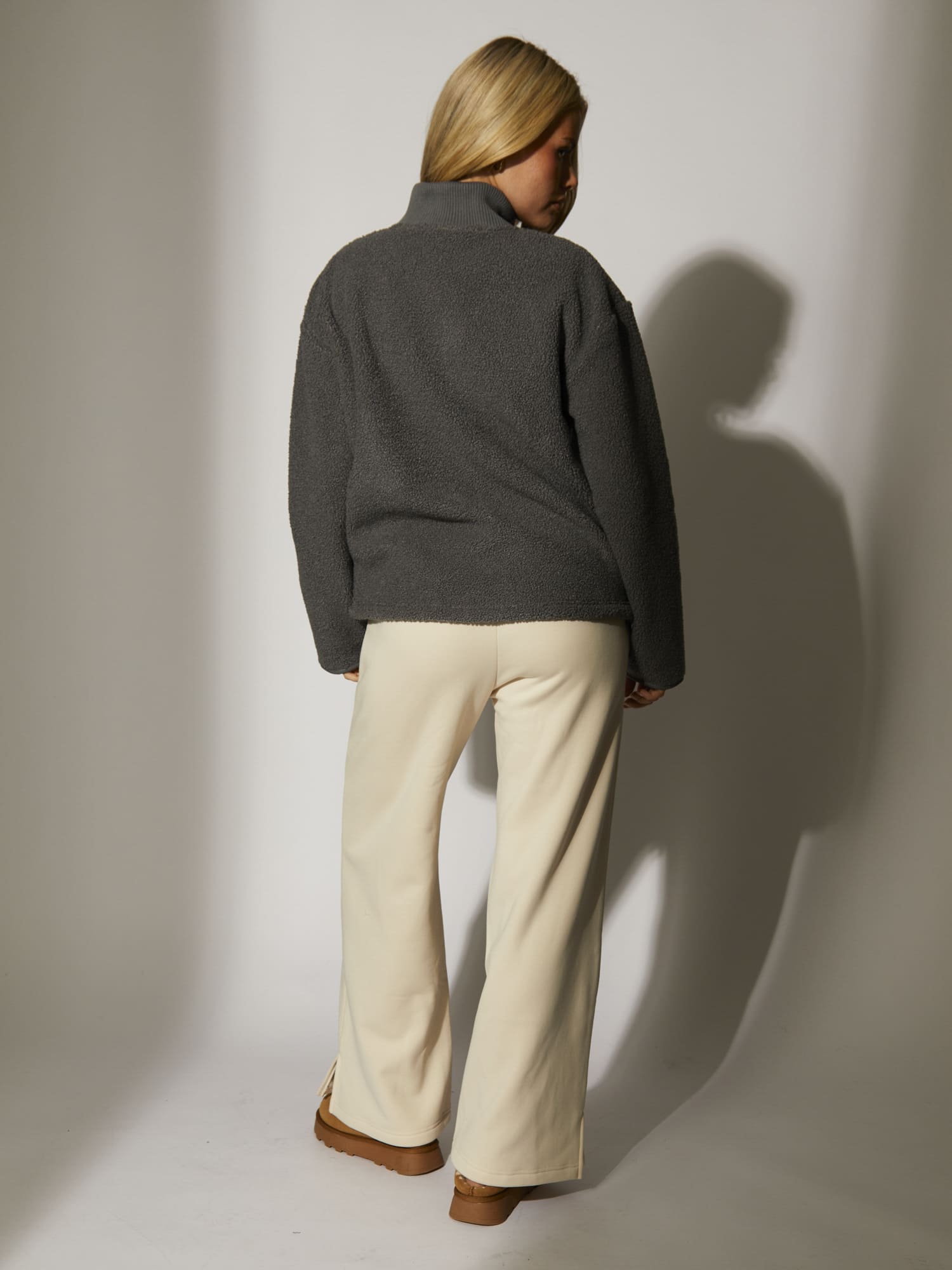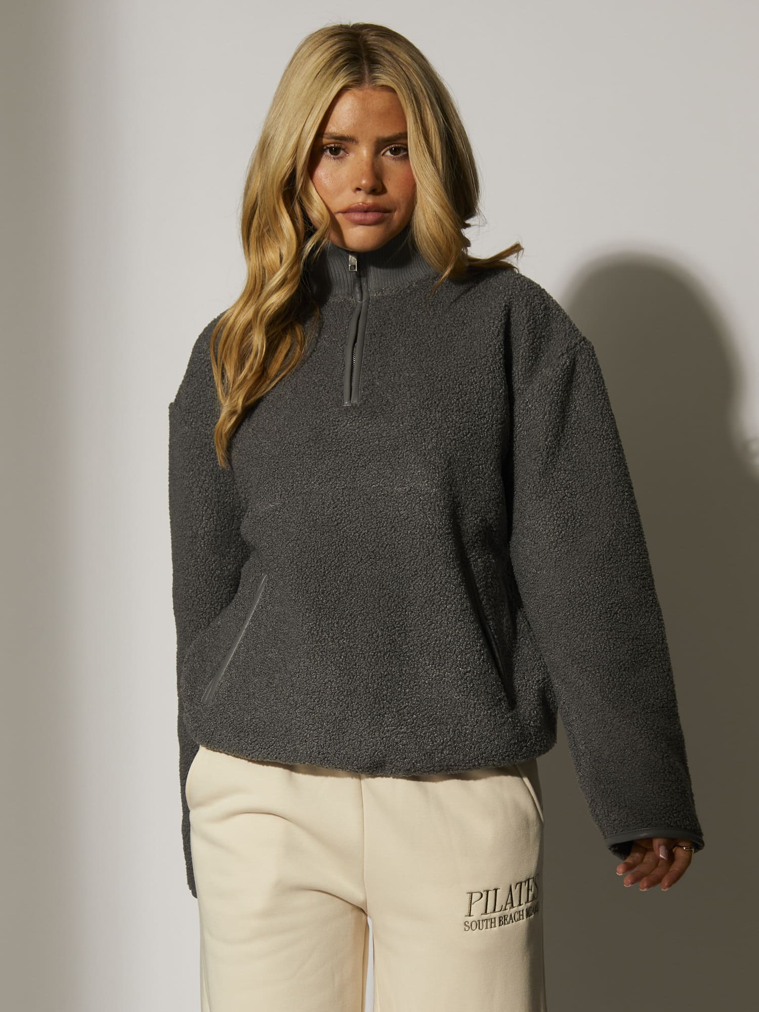 The classic quarter zip jumper in a cosy faux shearling fabric with super soft fleece lining.