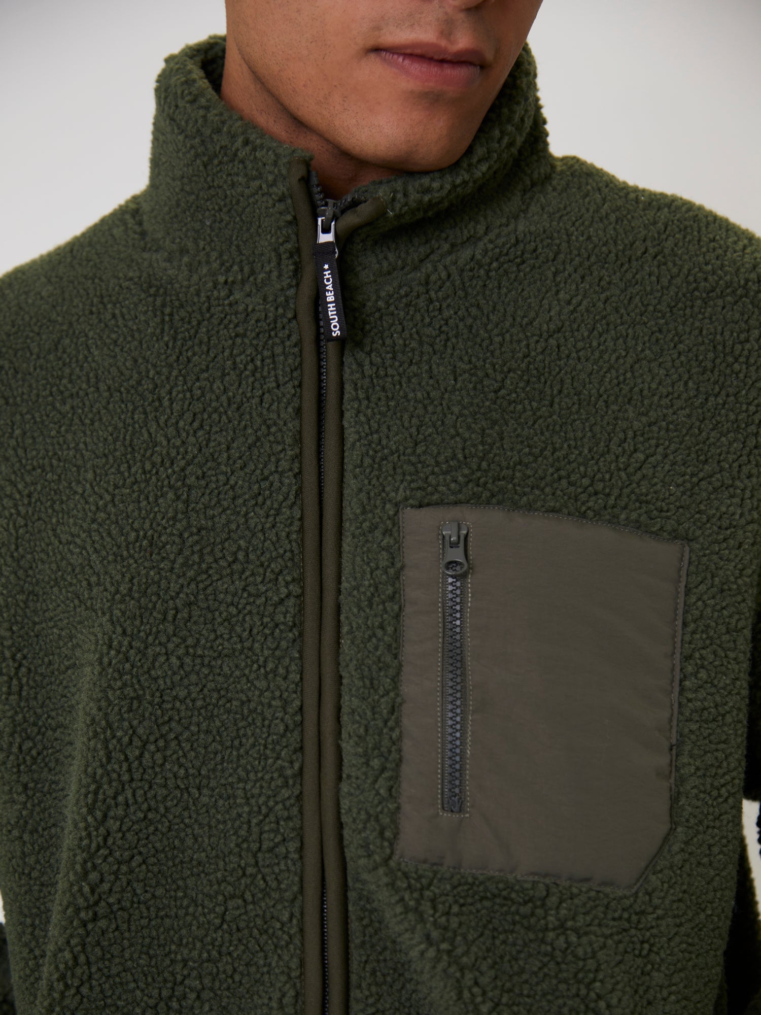 • Contrast zip chest pocket