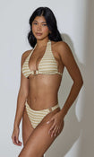 A shimmering bikini top for standing out poolside.