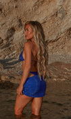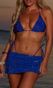 Our AMNESIA beach skirt in COBALT BLUE HOT FIX, is a must-have for your suitcase this season. Adorned with hot fix embellishments, this piece is perfect for any pool party.
