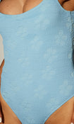 Crinkle Daisy Scoop Back Swimsuit in Pale Blue