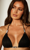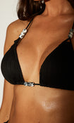 Black Wave Rib Zebra Bead Triangle Bikini Top