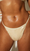 Shimmer your way through beach days in our 'Sunseeker' bikini bottoms. These vanilla sequin bottoms catch the light with every move, adding a touch of glamour to your seaside style.