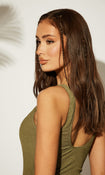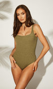 Introducing our Crinkle Scoop Swimsuit in Khaki: a must-have for your summer wardrobe! This stylish and versatile swimsuit features a unique crinkle texture and a flattering scoop neckline.
