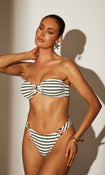 Dive into style with the ‘sea you soon’ bottoms with ring detail in white stripe! Designed to flatter and provide support, these briefs feature a unique white stripe pattern and ring details on the sides.