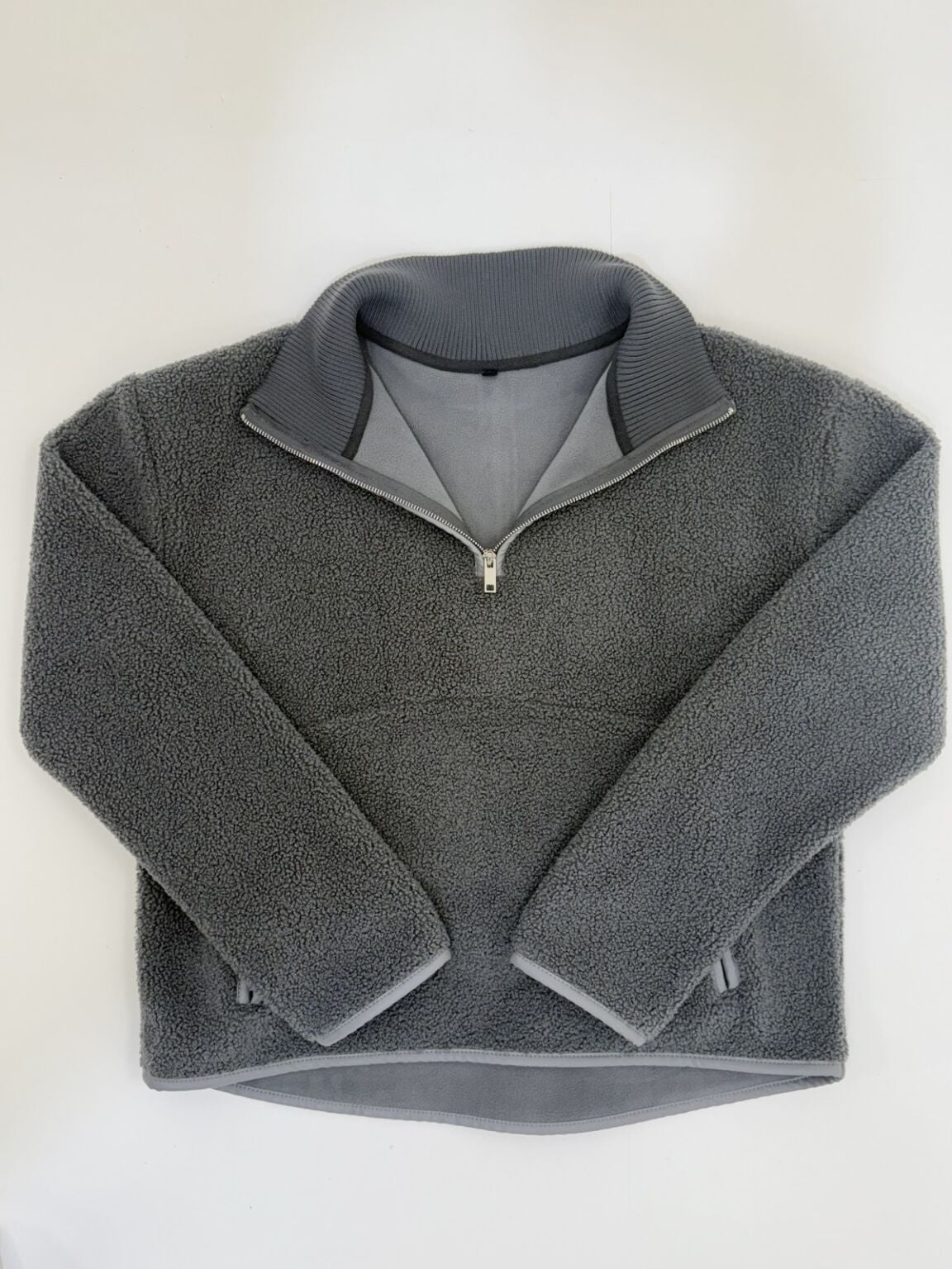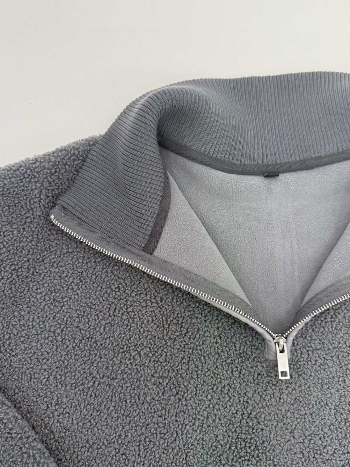 The classic quarter zip jumper in a cosy faux shearling fabric with super soft fleece lining.