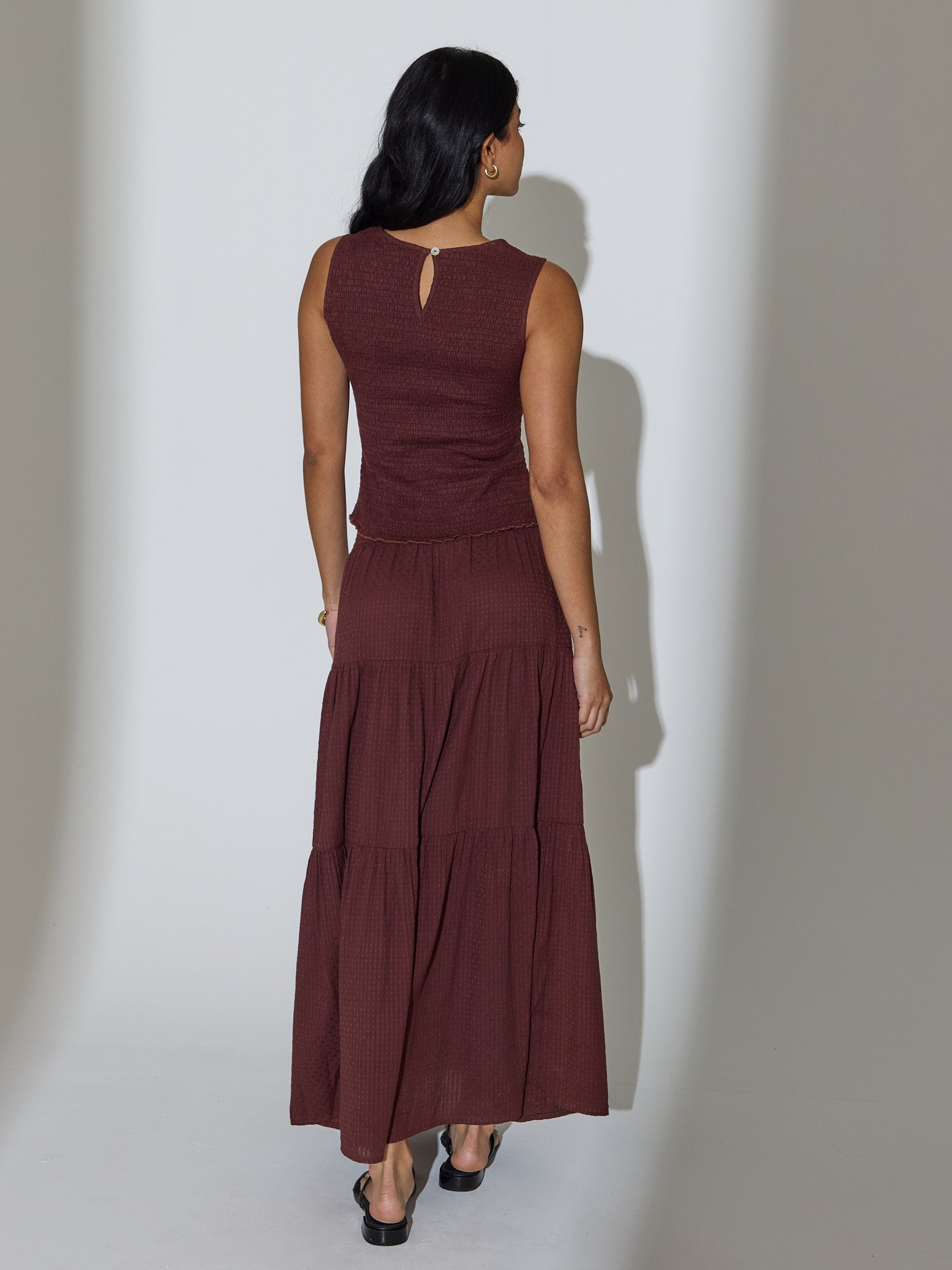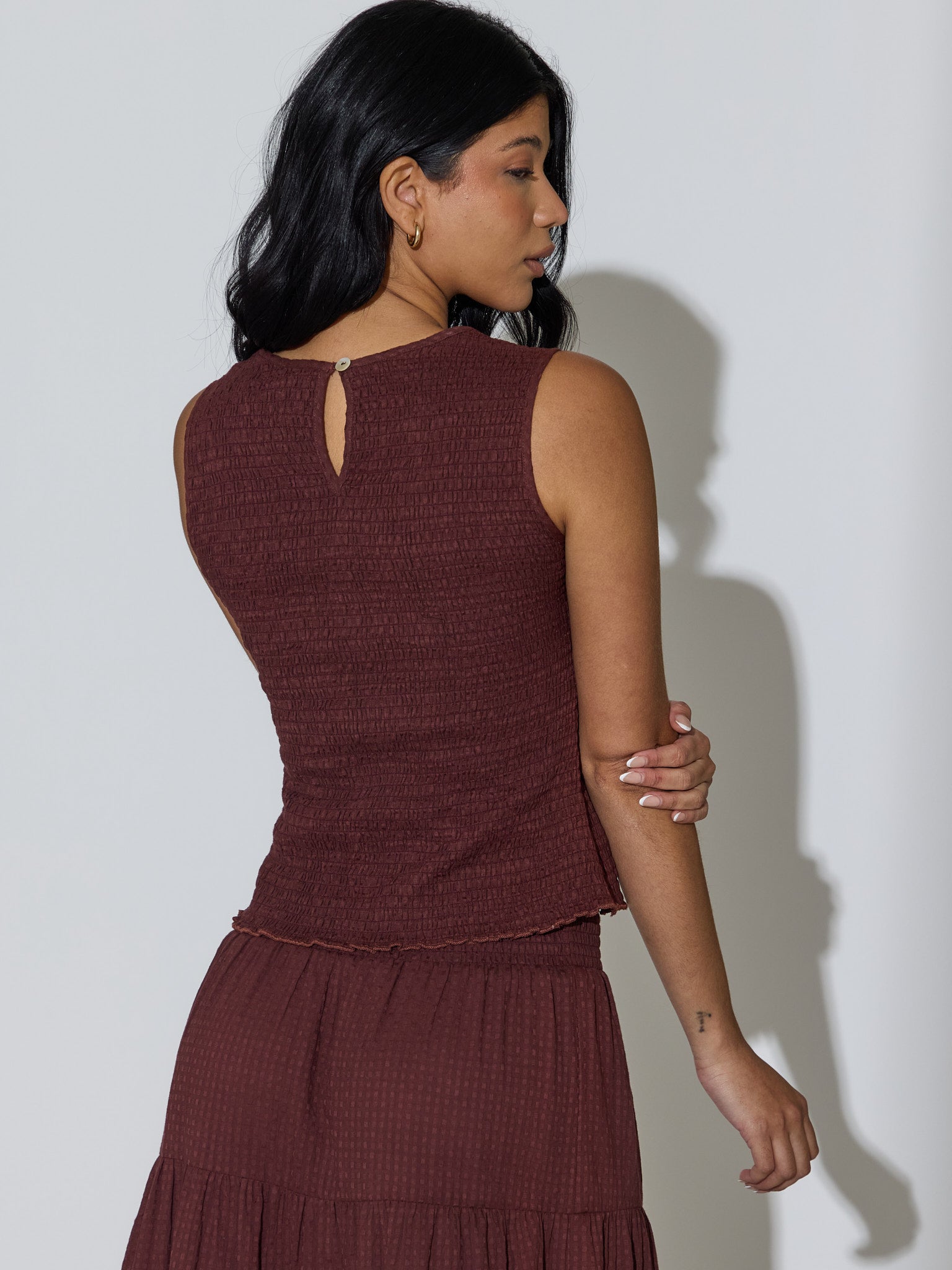 Effortless summer style with a textured shirred finish.