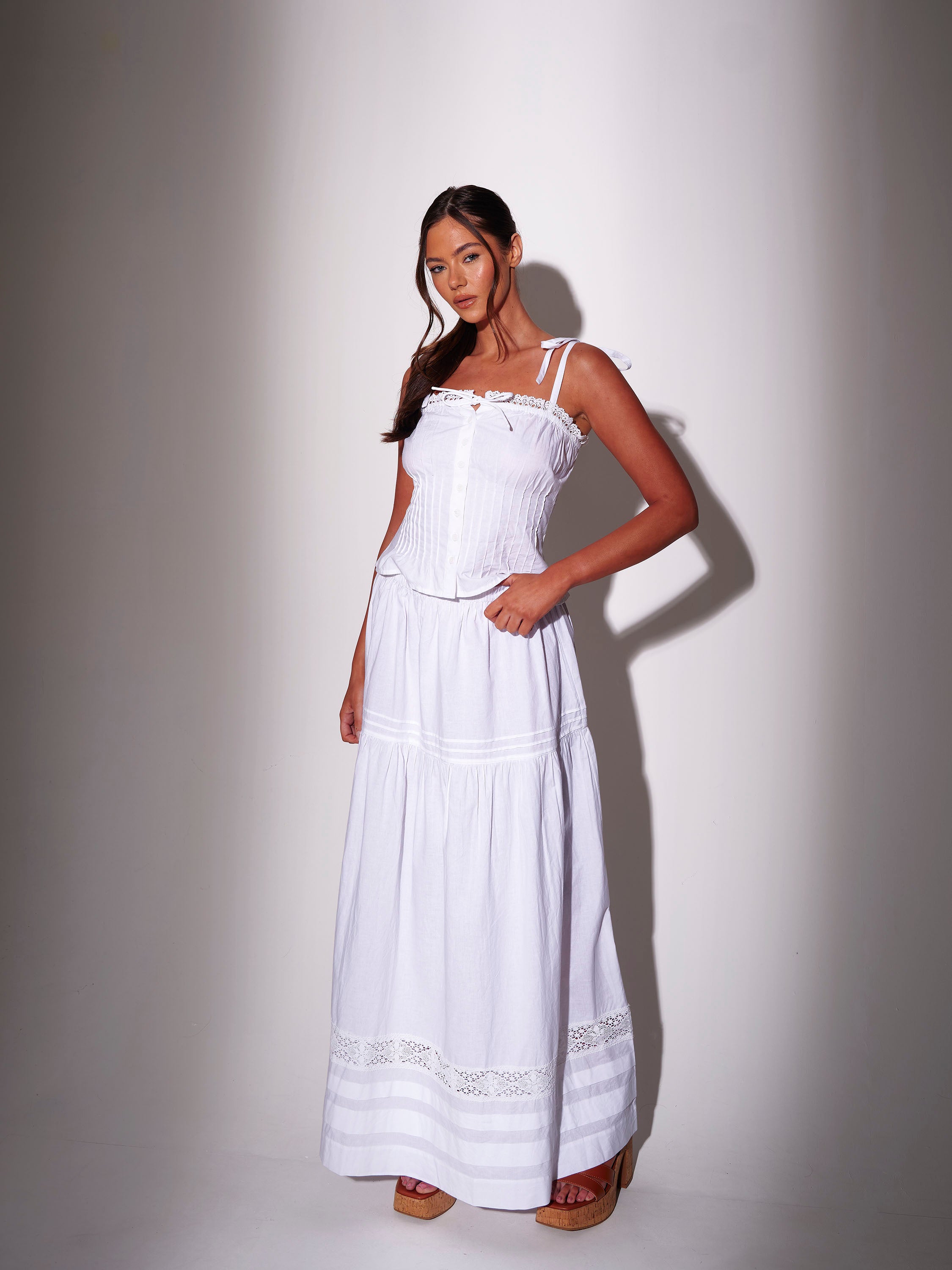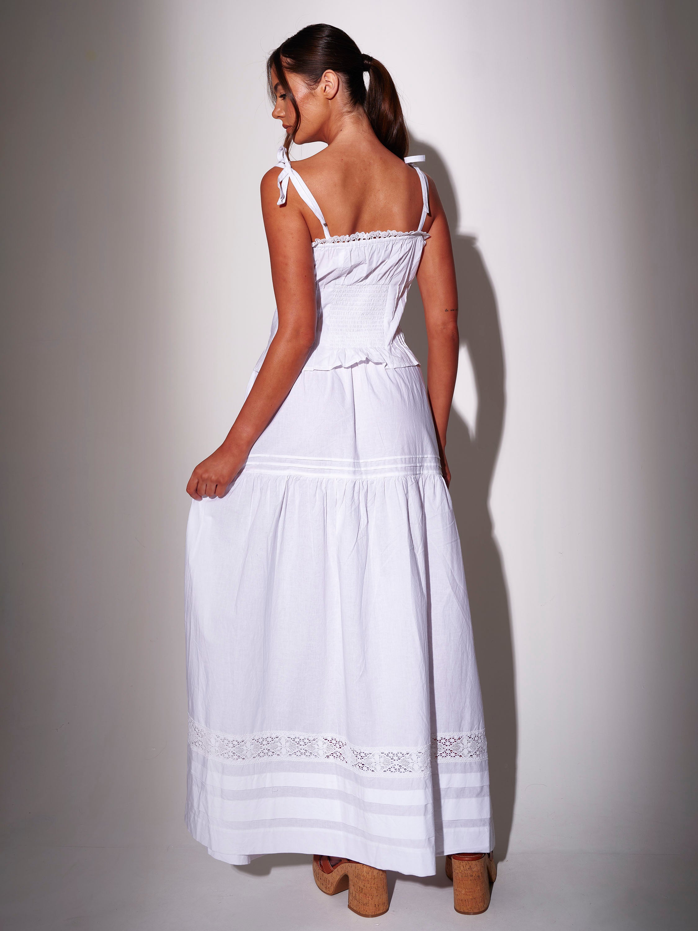 Bluebell Tie Shoulder Cotton Top in White