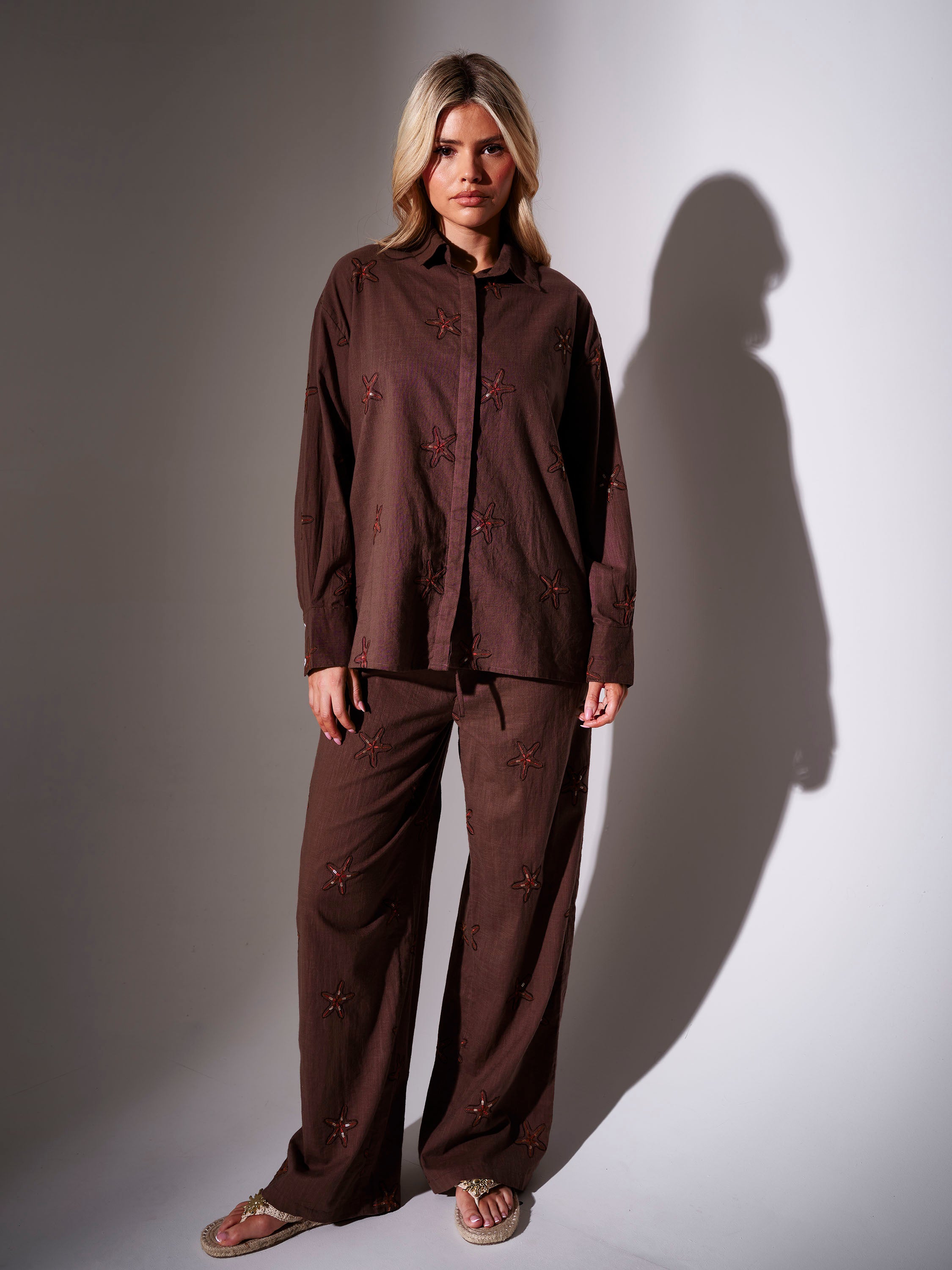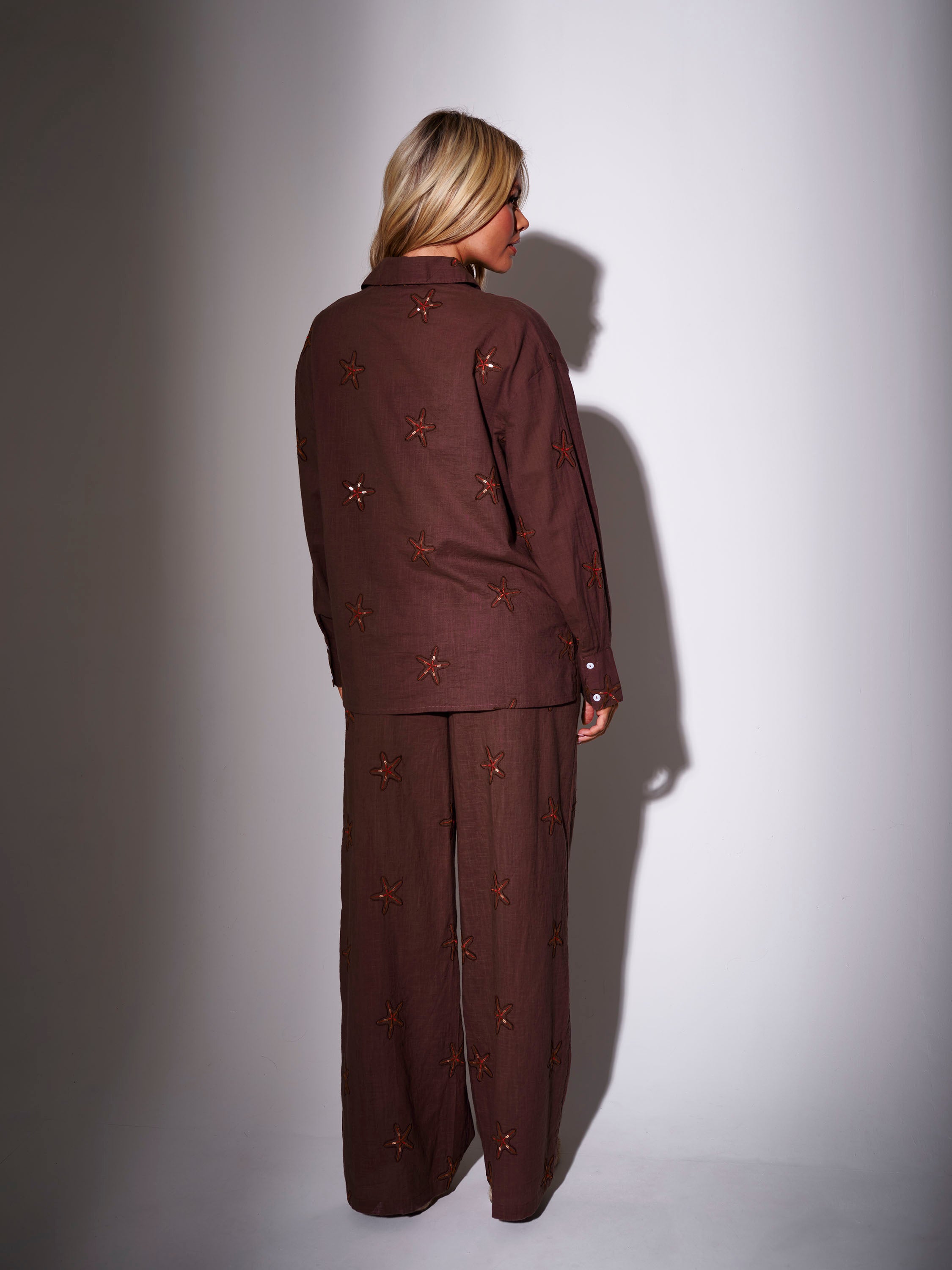 • All-over embroidered starfish accents