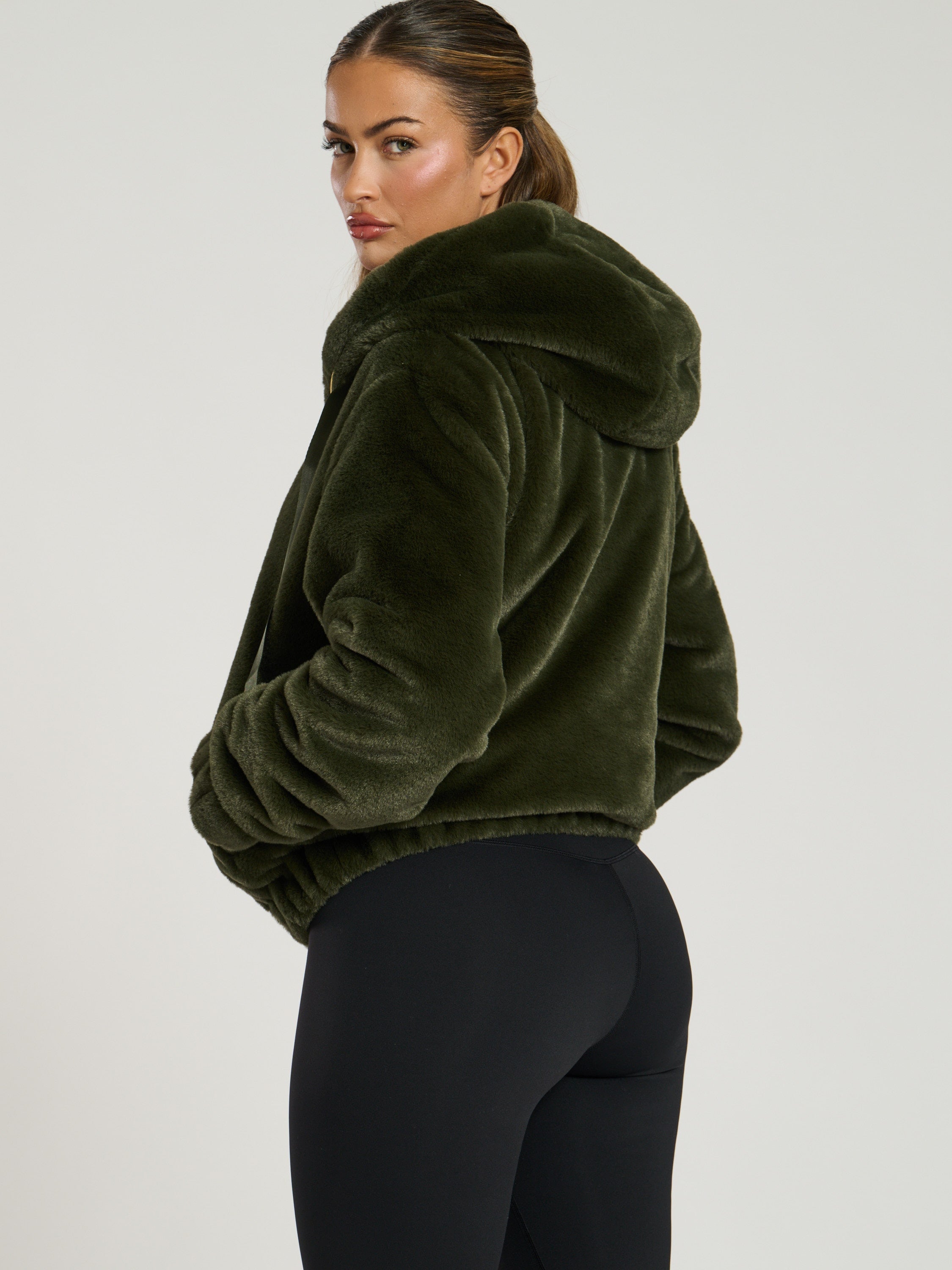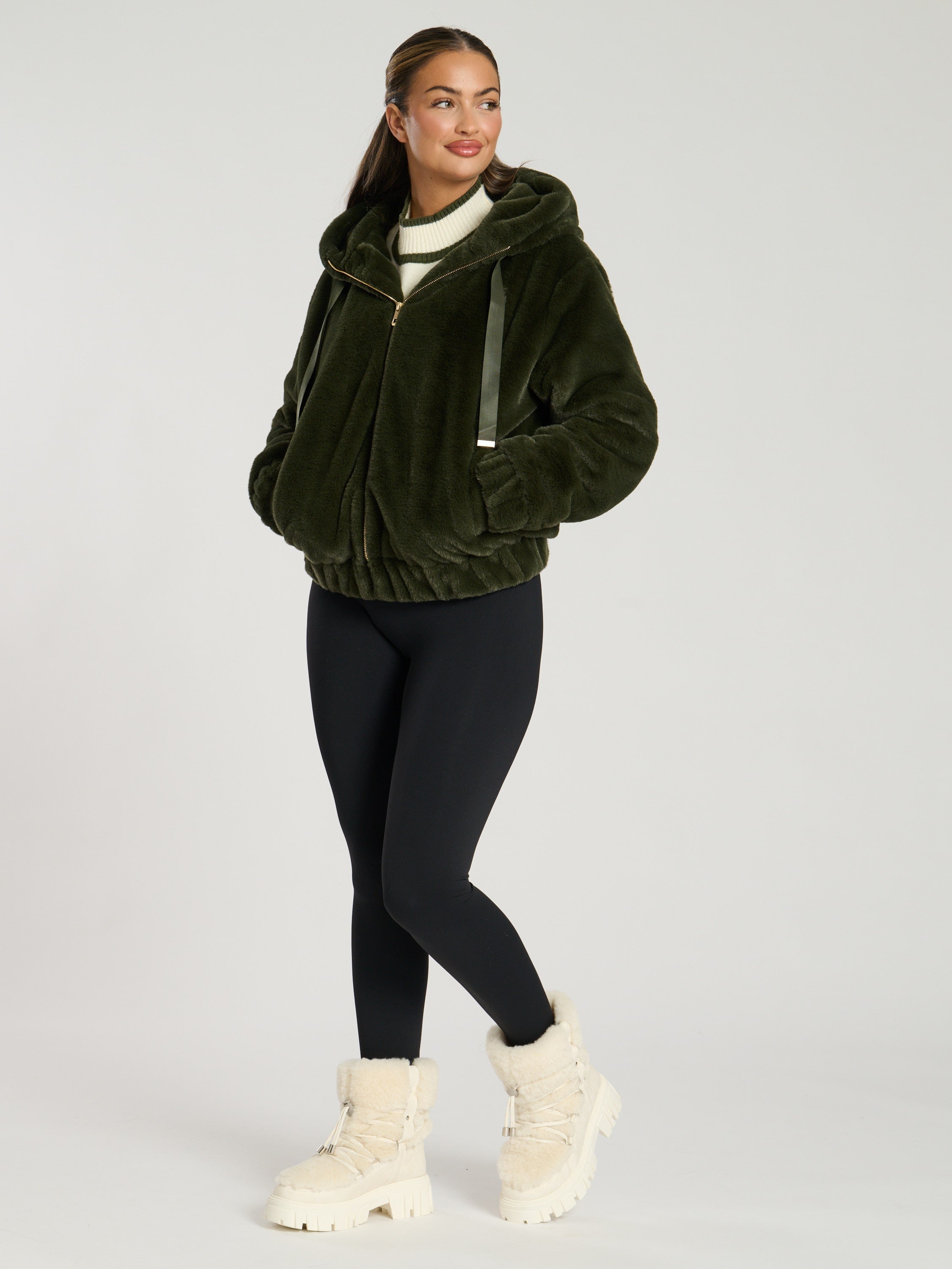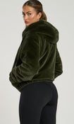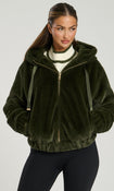 Experience the luxurious warmth and chic style of our HIBERNAL FAUX FUR HOODED JACKET IN KHAKI.