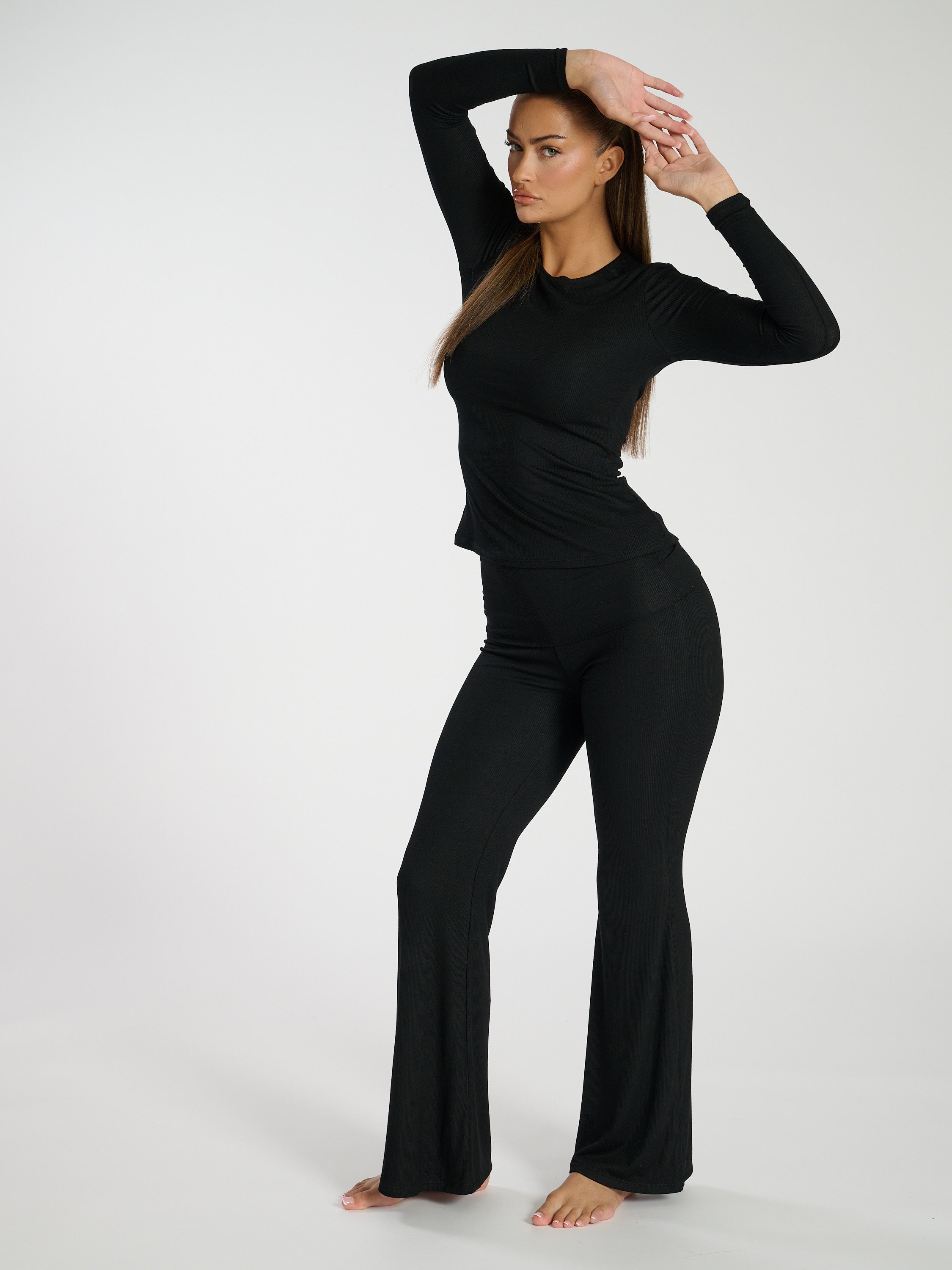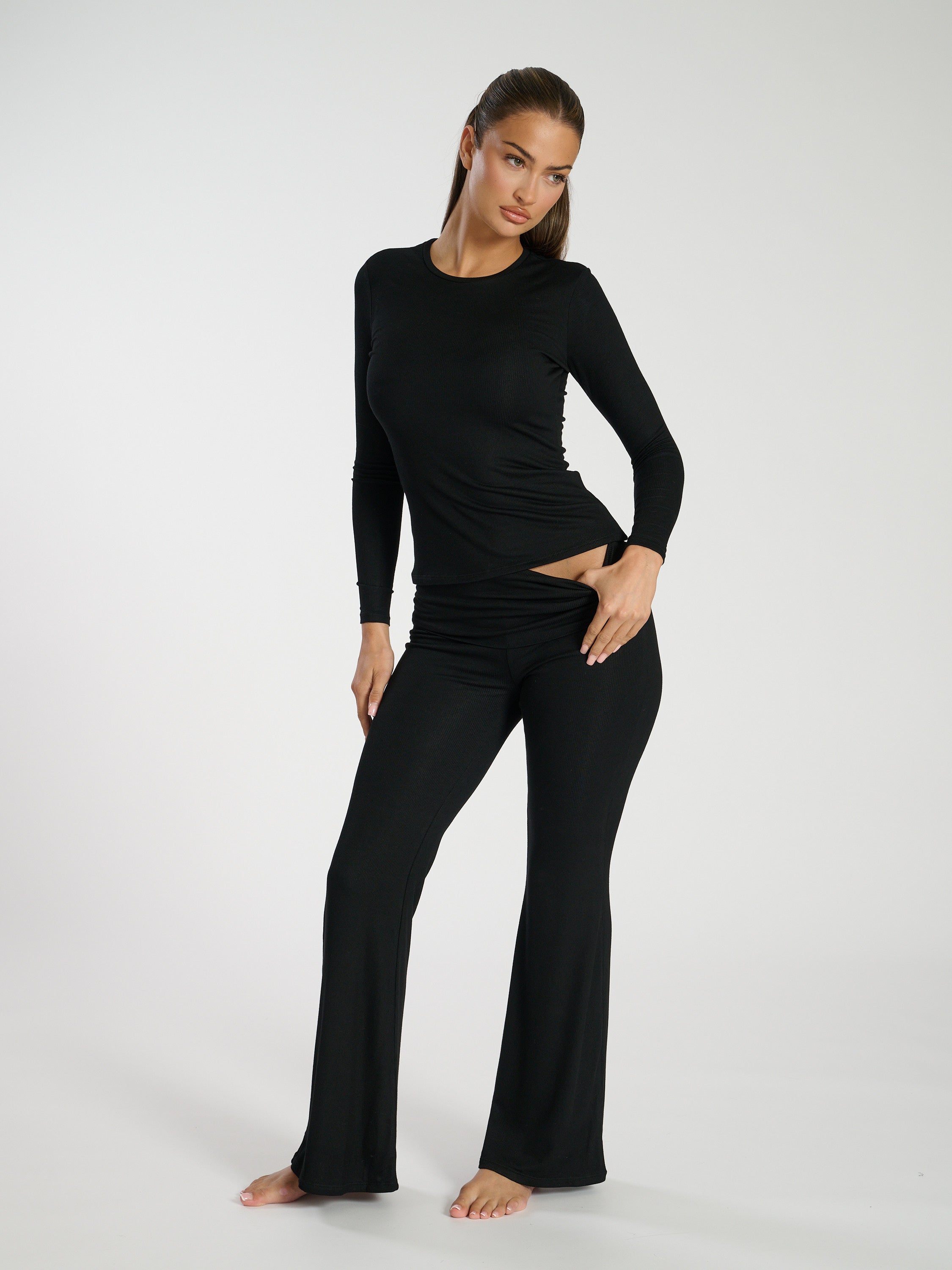 Complete your loungewear look with our OVERLAP DOUBLE LAYER RIB JERSEY FOLD OVER FLARES.