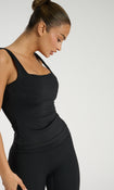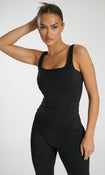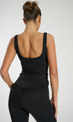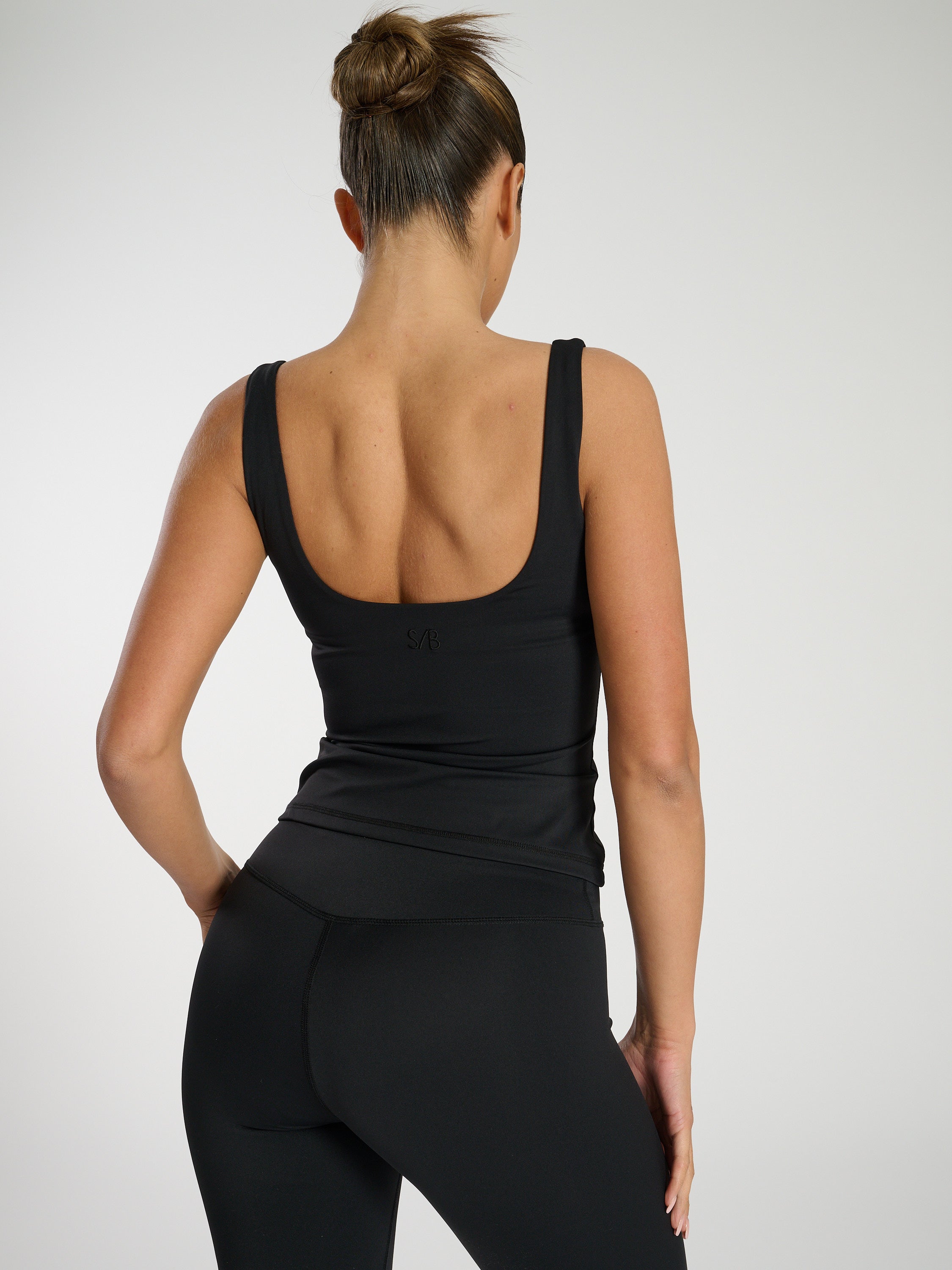 Elevate your athleisure wardrobe with our essential MOULD BUILT IN BRA SUPPORT SCOOP VEST IN BLACK, the perfect blend of comfort and style for your active lifestyle.